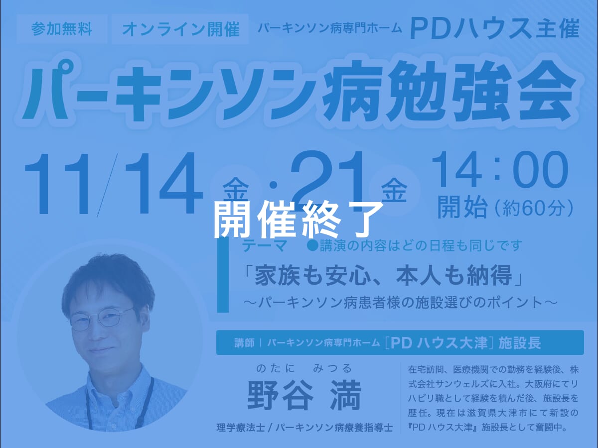 パーキンソン病勉強会「家族も安心、本人も納得〜パーキンソン病患者様の施設選びのポイント〜」