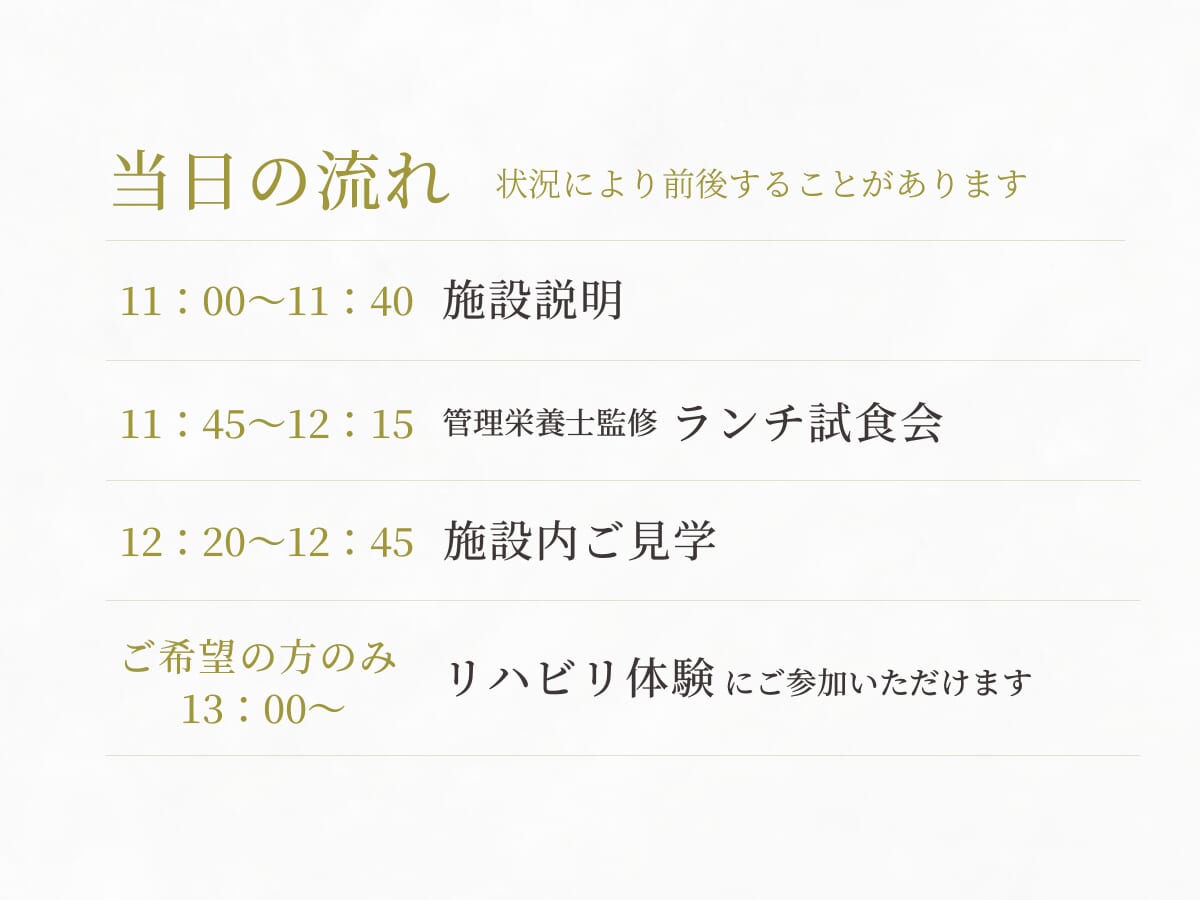 この度PDハウス東浦和にて、施設内見学に加えお食事の実食もできる特別な見学会を実施します。