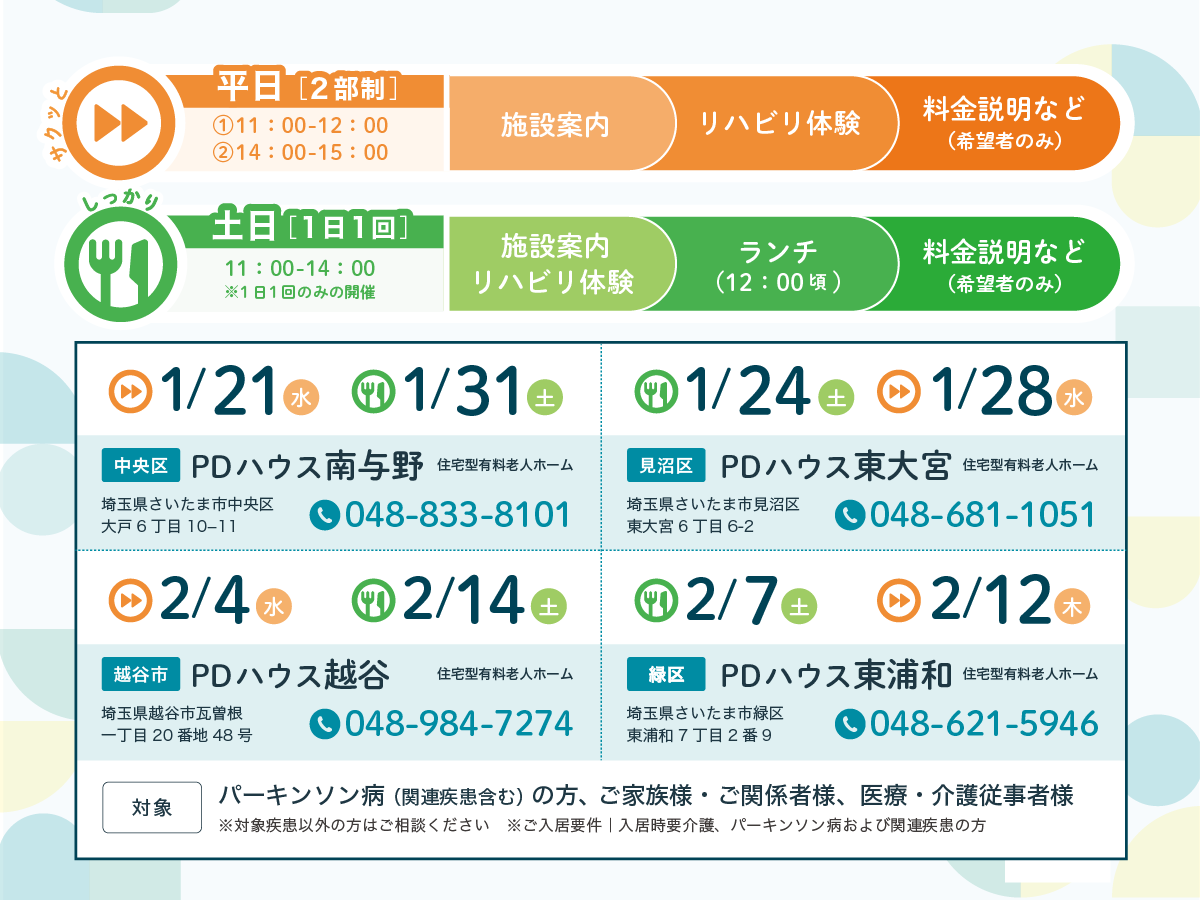 ■PDハウス越谷:2/4(水)、2/14(土)