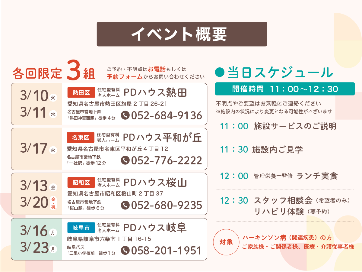 ■PDハウス岐阜:3/16(月)、3/23(月)