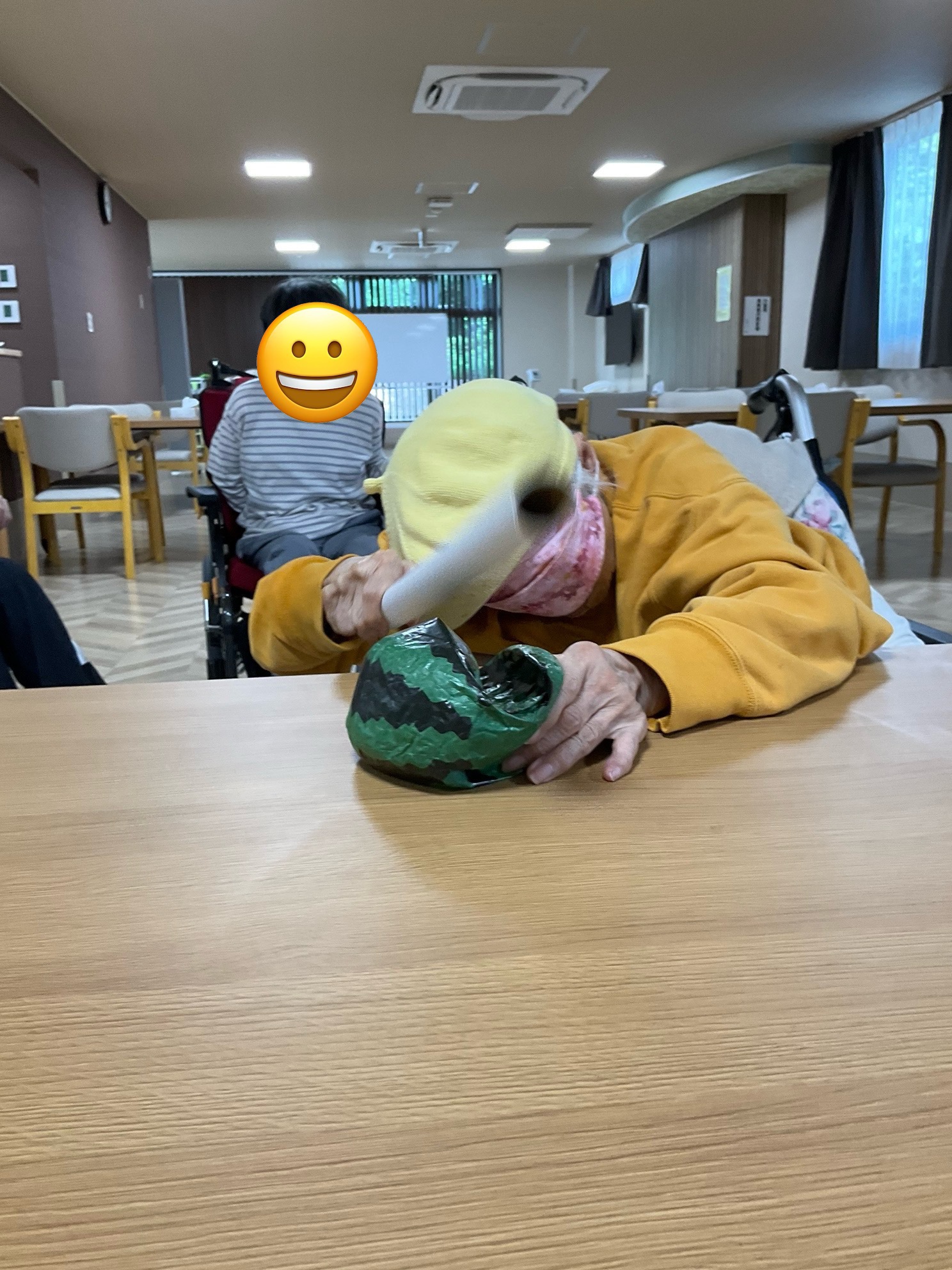 紙風船のスイカを用意しましたが、思った以上に割るのが難しかったようです😅