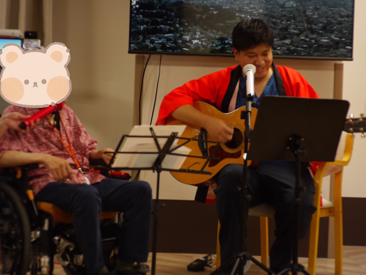 入居者様による歌のステージ、オカリナ演奏、職員と入居者様のユニット演奏✨
