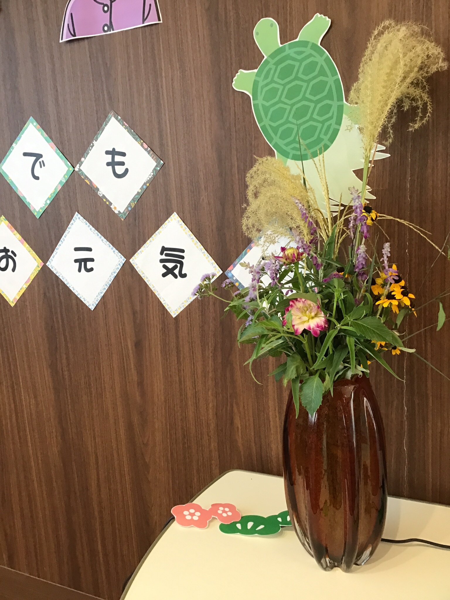 利用者様のご家族が持ってきて下さったススキを飾り🌾