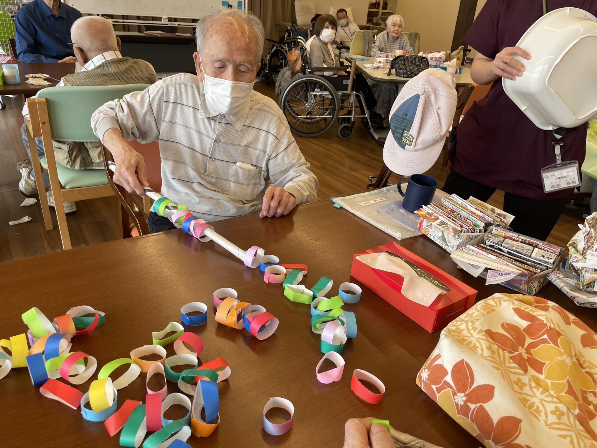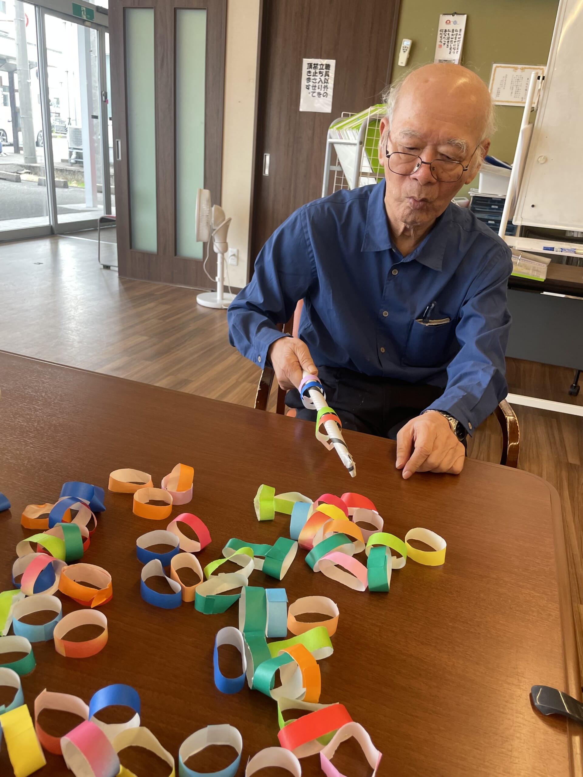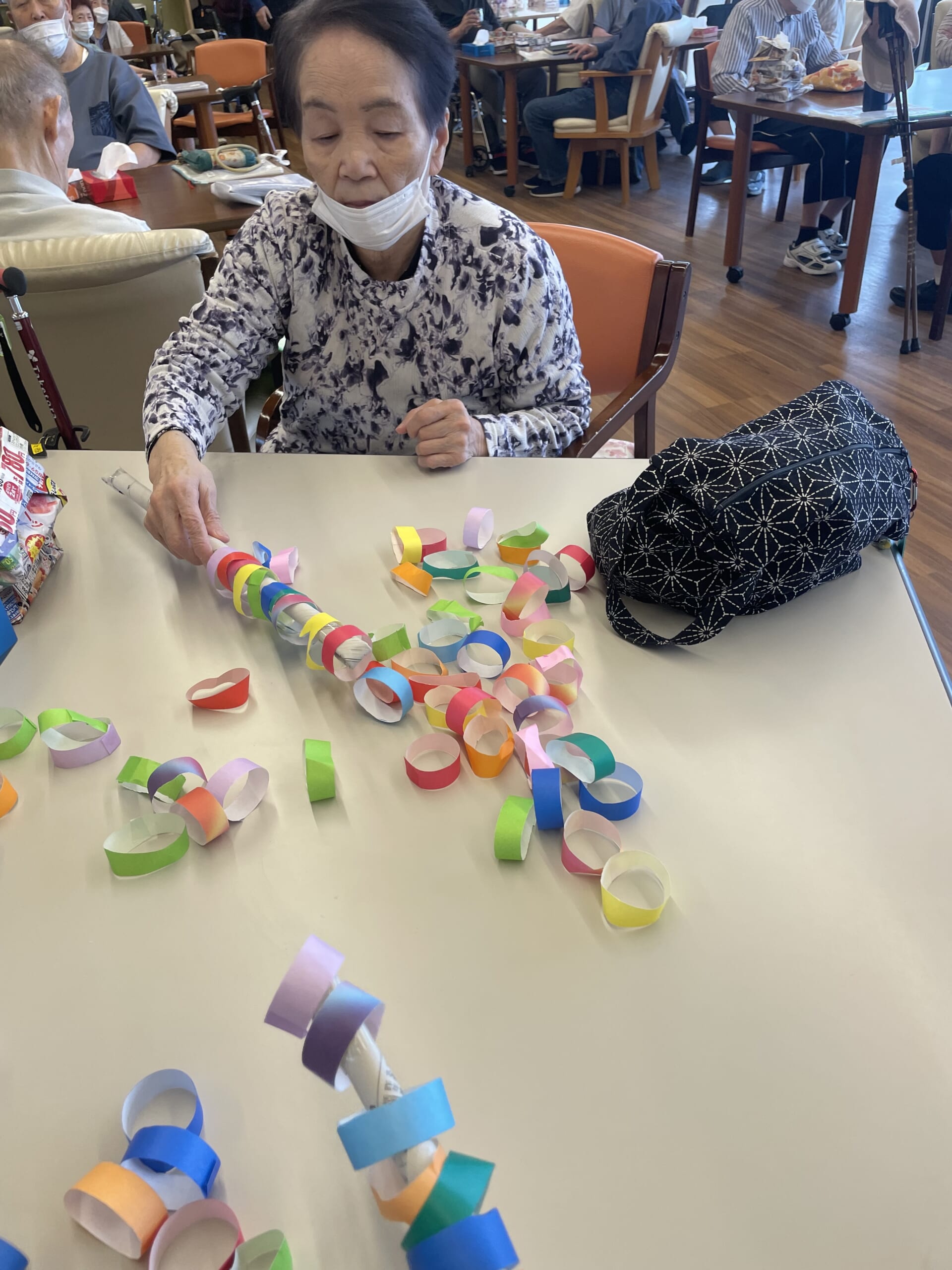 たくさんの折り紙の輪っかと