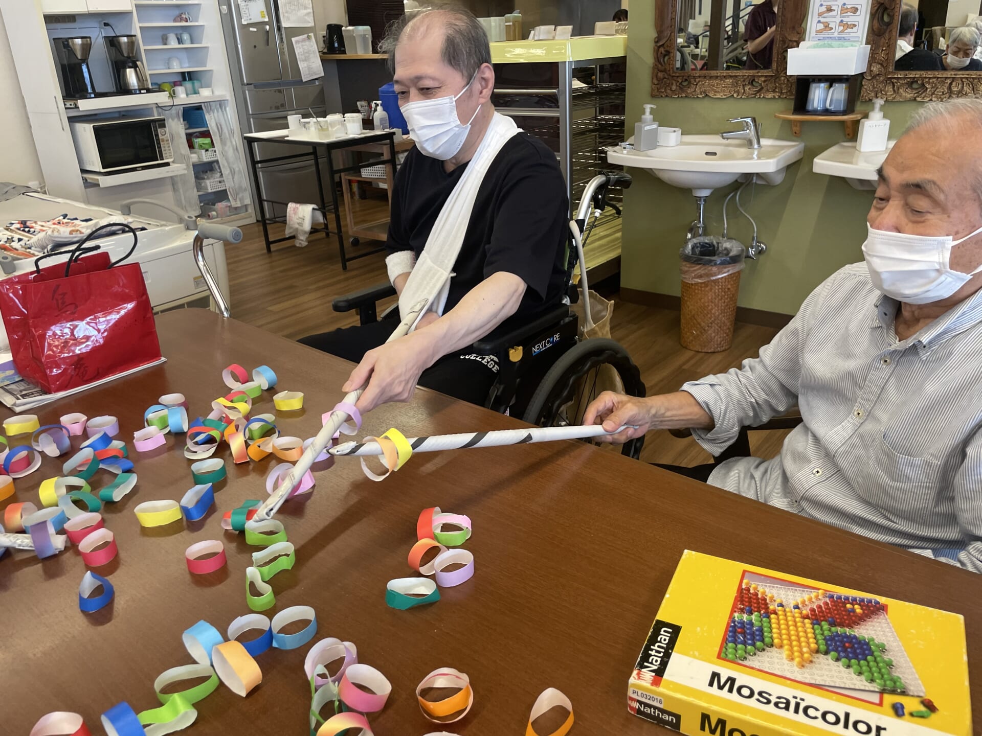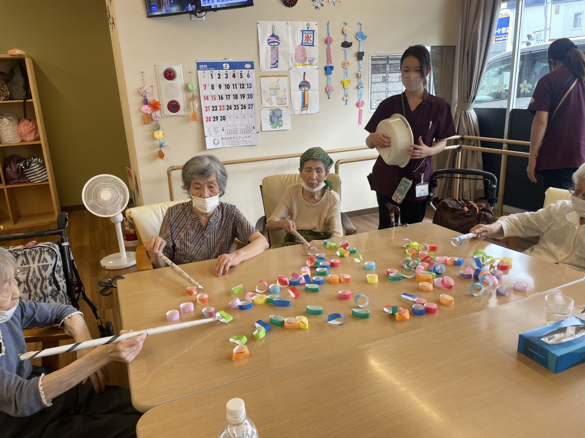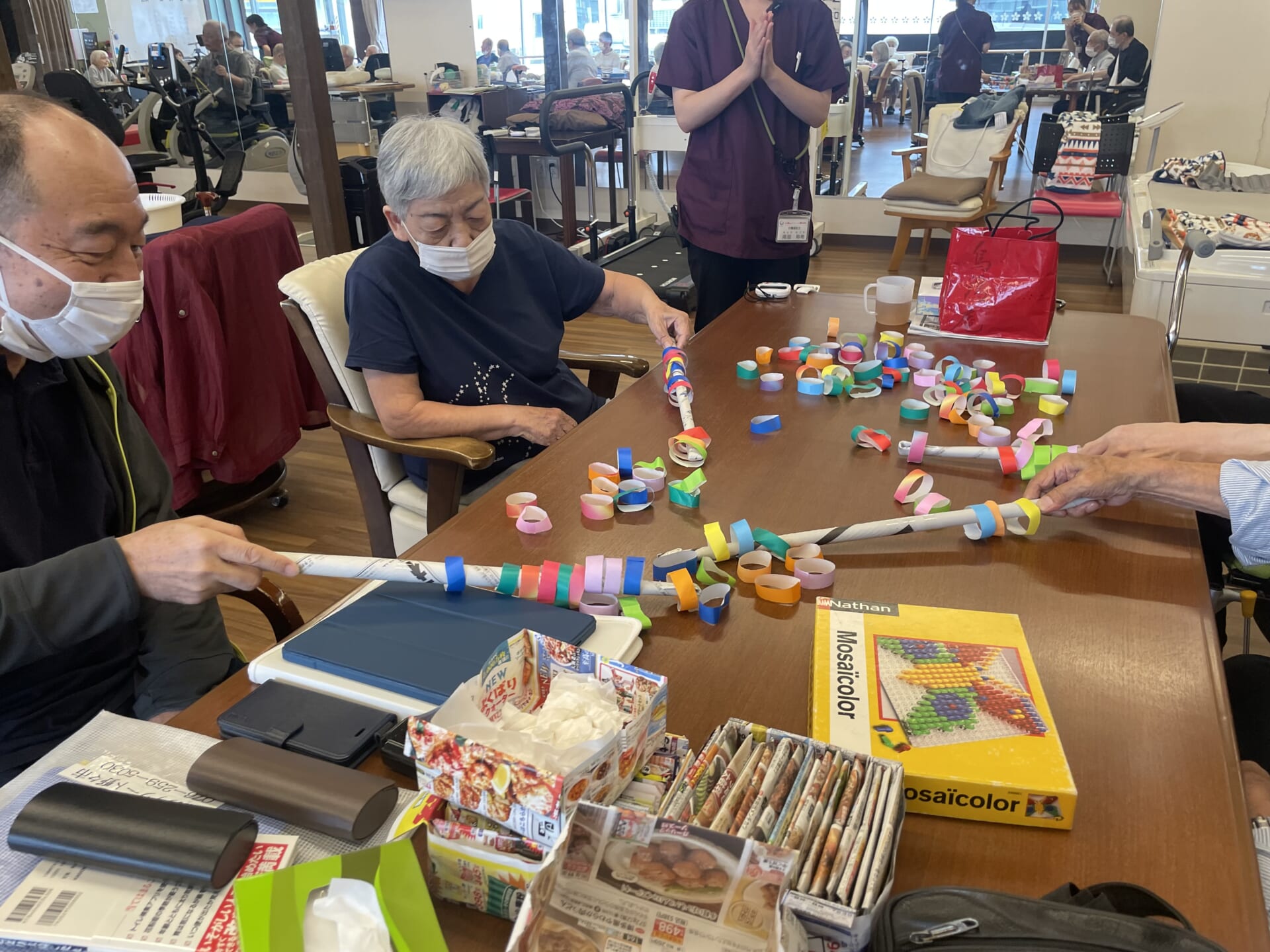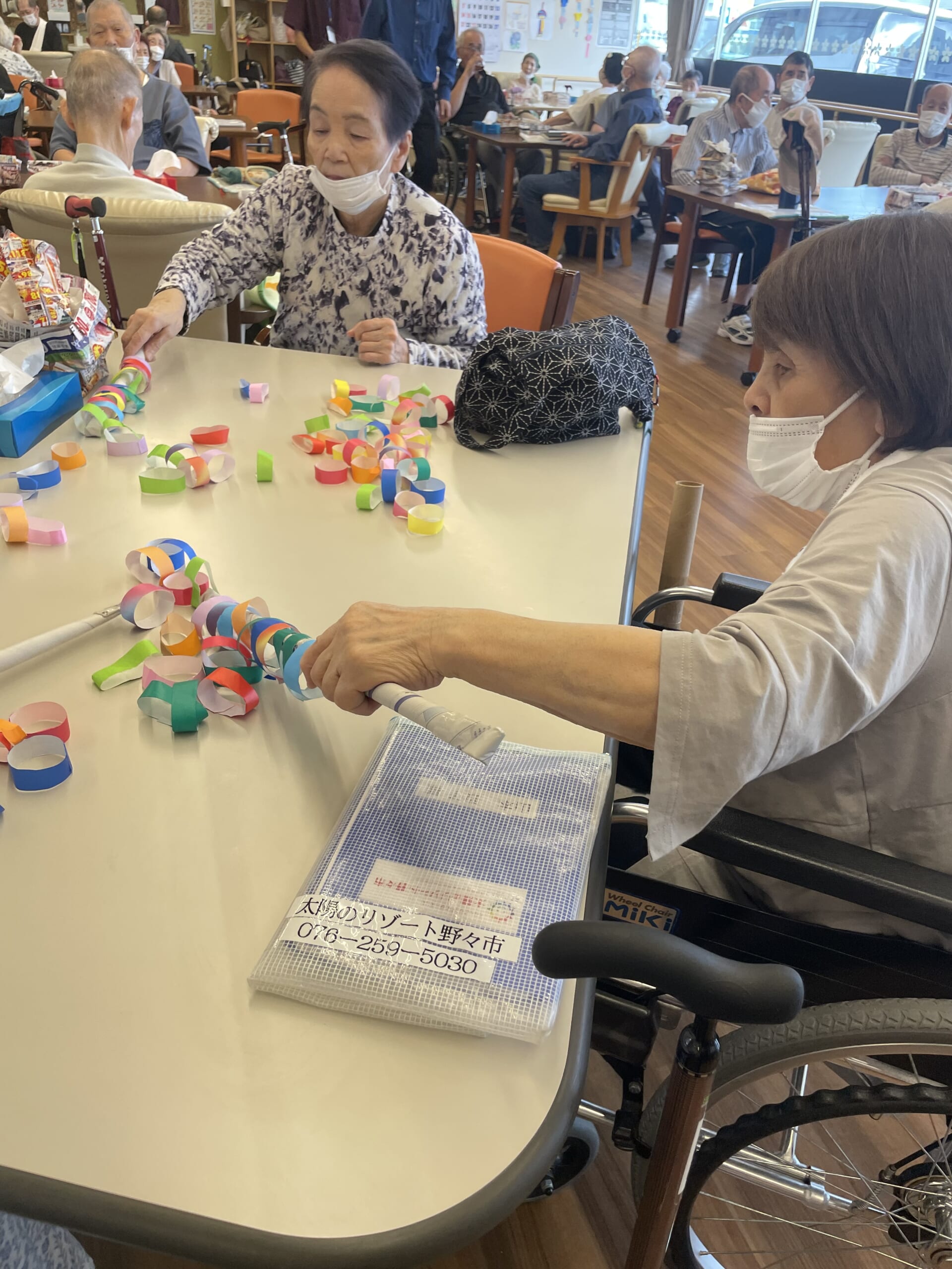 たくさんの折り紙の輪っかと