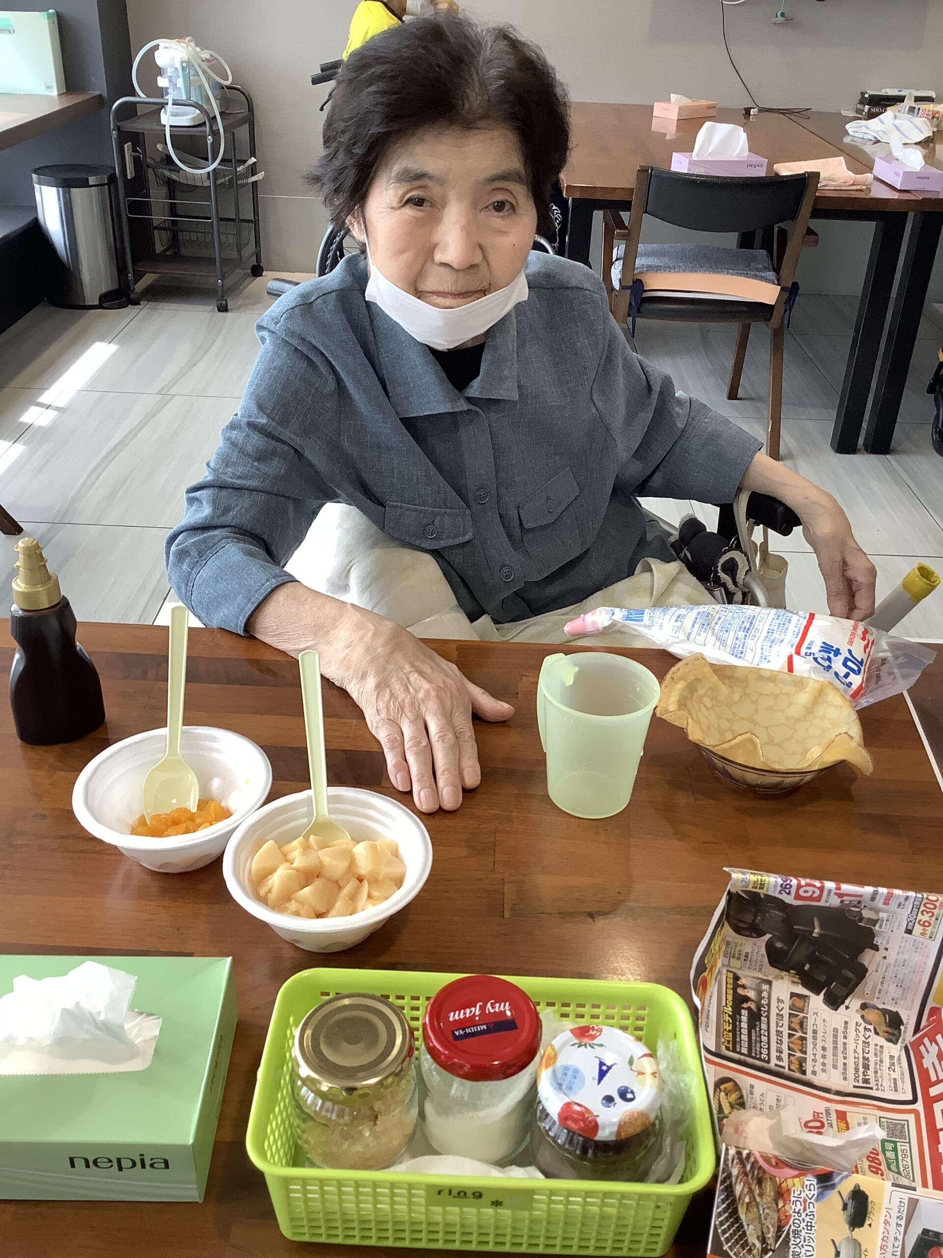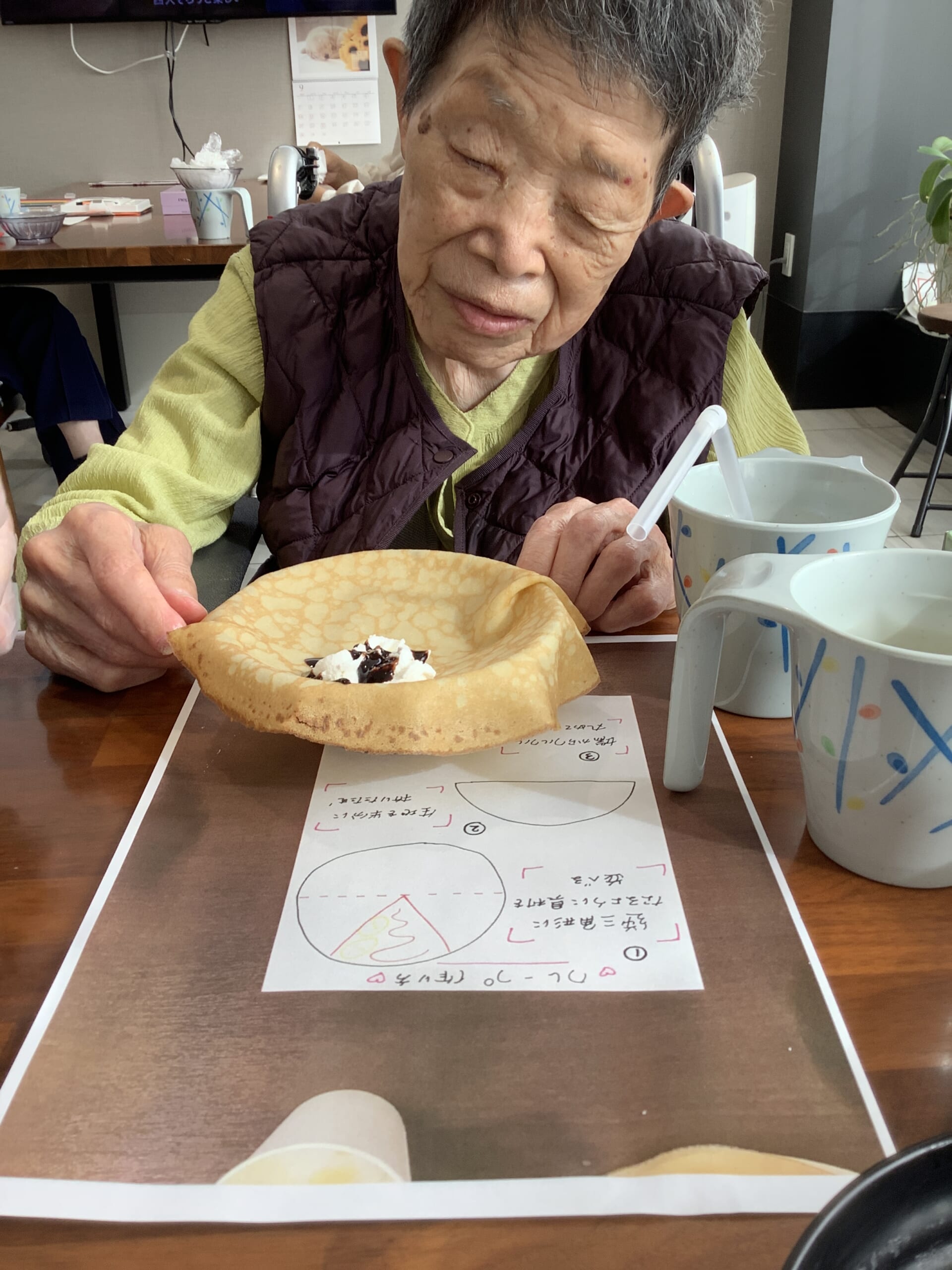 施設のおやつの時間帯に合わせてクレープ作り体験を行いました!