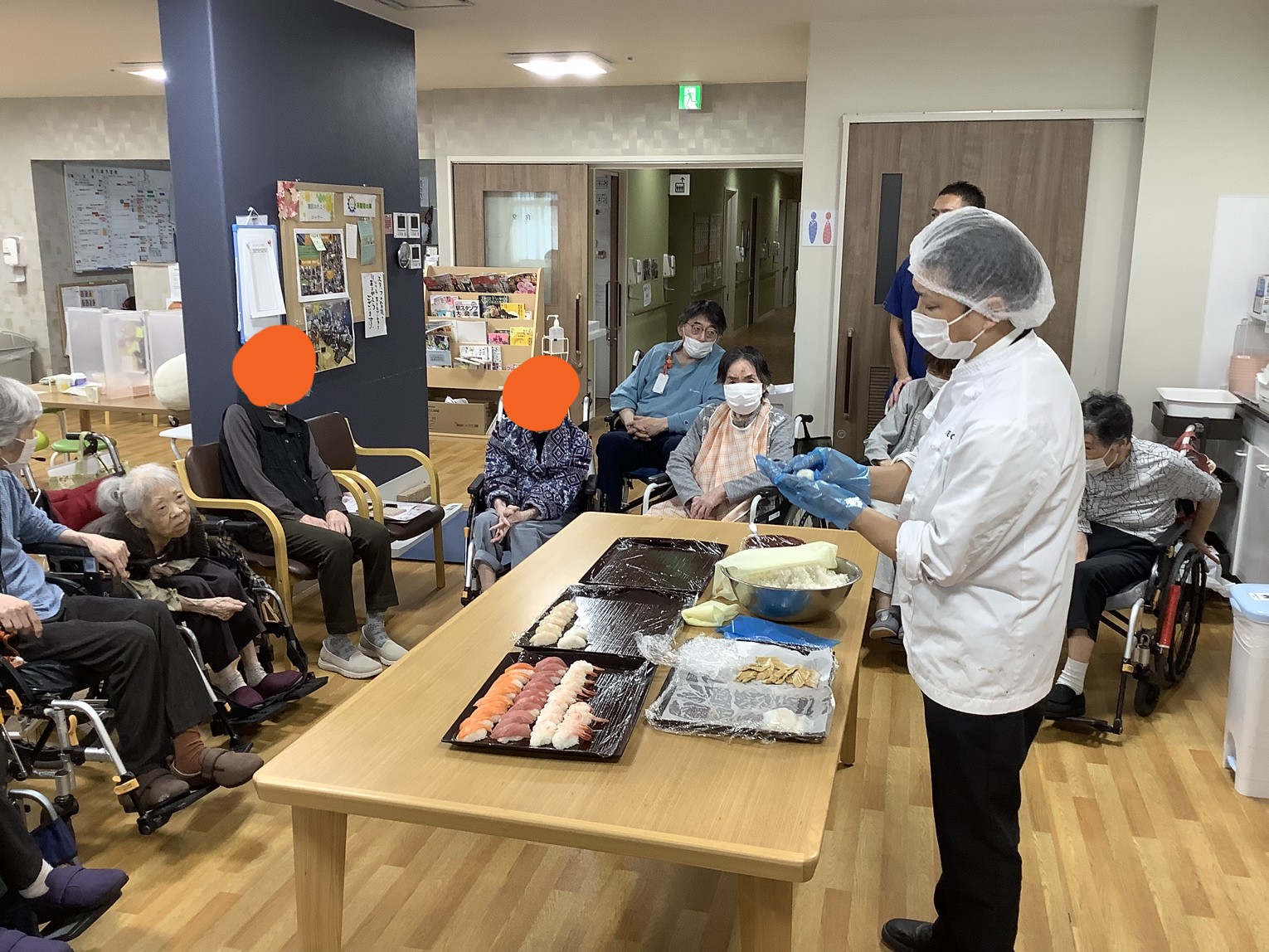 入居者の皆さま、お寿司🍣が完成するのを、じっくりと真剣に眺めております!