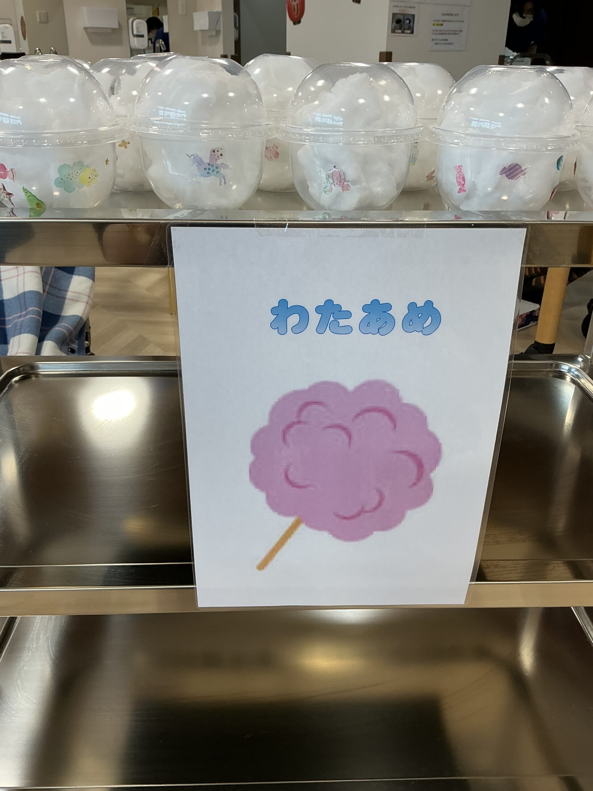 綿あめが入っている容器に可愛くシールが貼ってあるのですが実は、ご利用者様が一生懸命貼ってくださいました😊