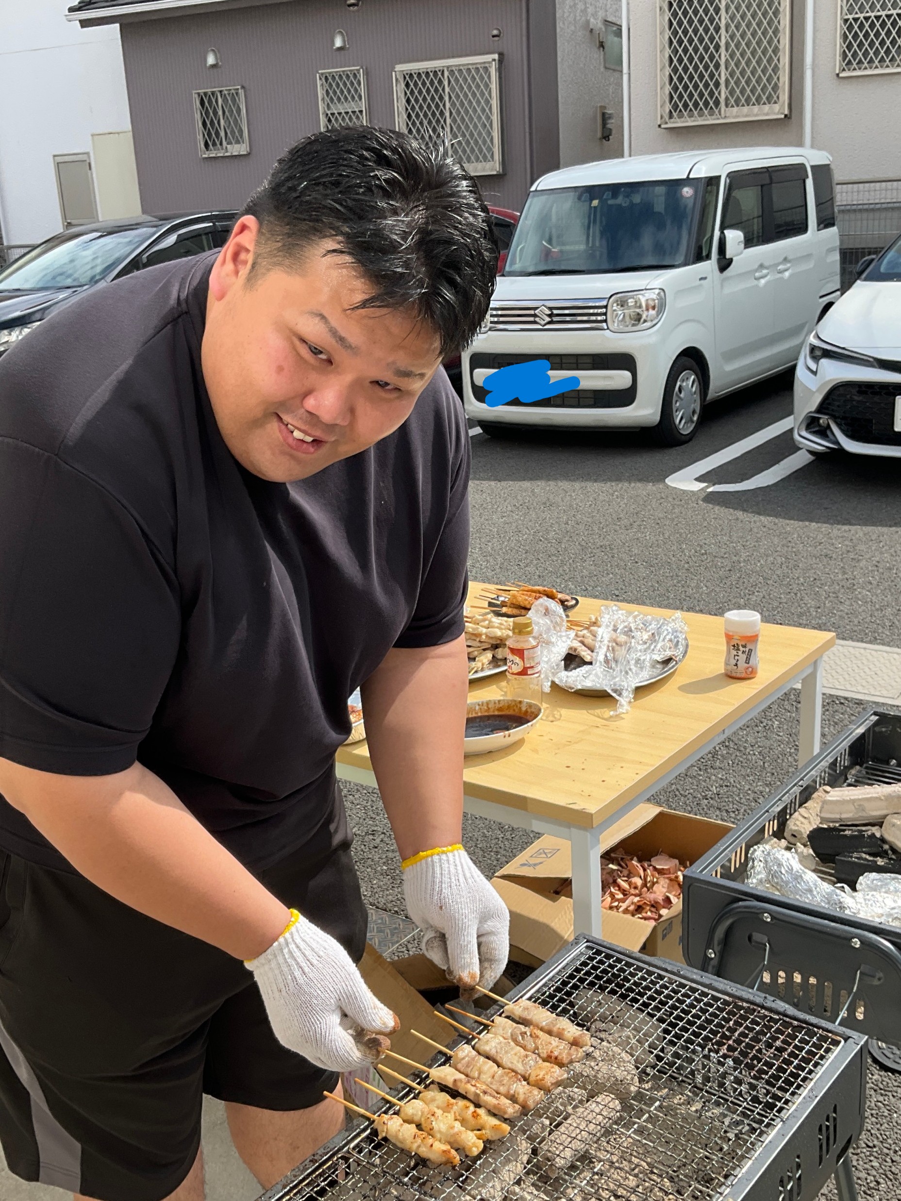 *焼き鳥を1つ1つ焼いてくれている心優しき我らが介護副主任(*^▽^*)