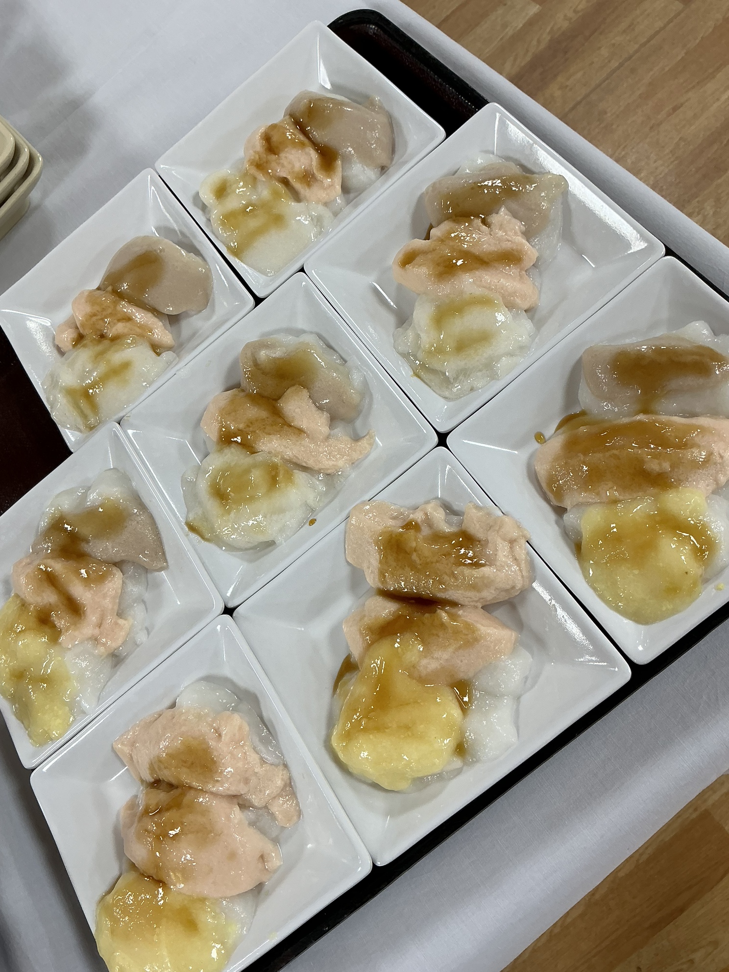 食事形態がゼリー食の方々には魚のダシを入れたお寿司ゼリーをご用意!