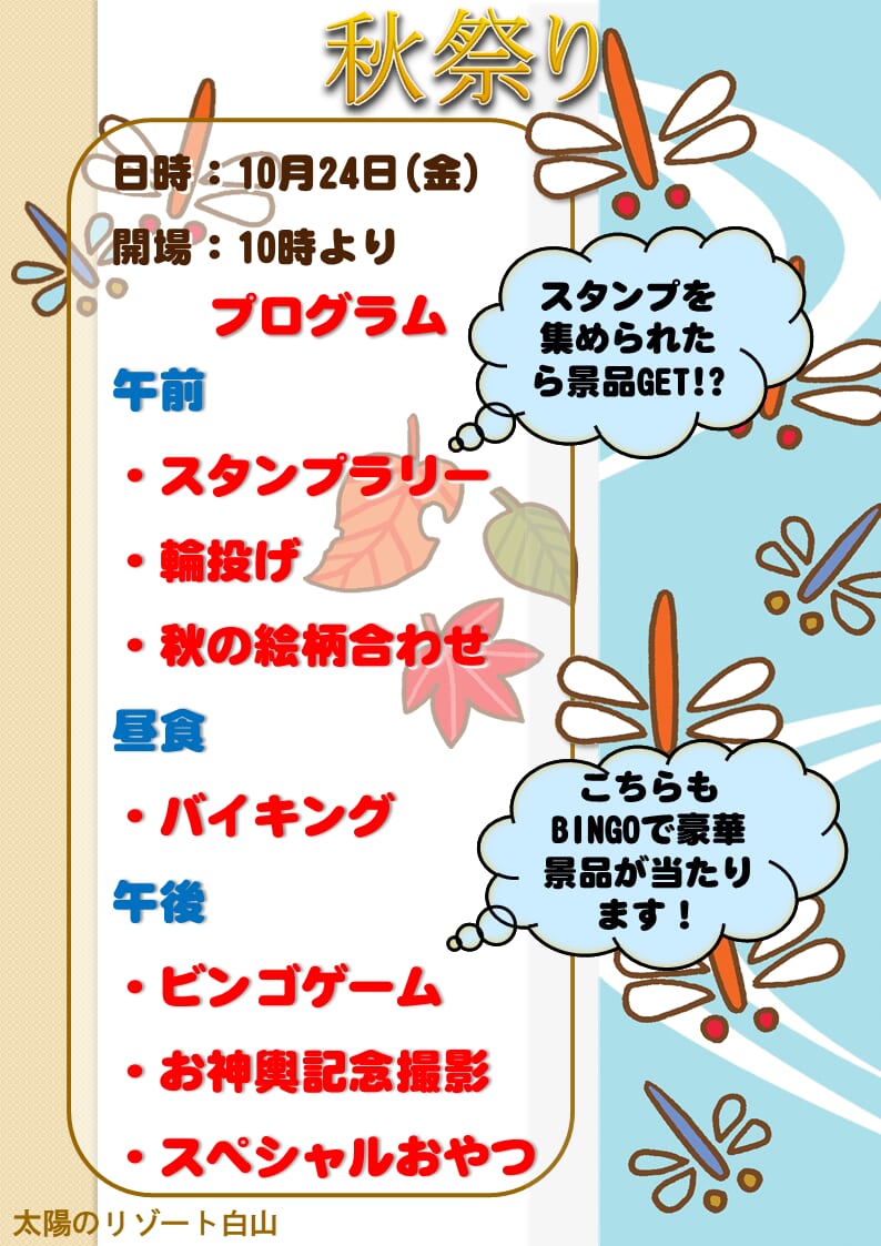 今回も太陽のリゾート白山のブログをご閲覧いただきありがとうございました!