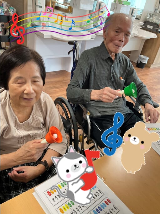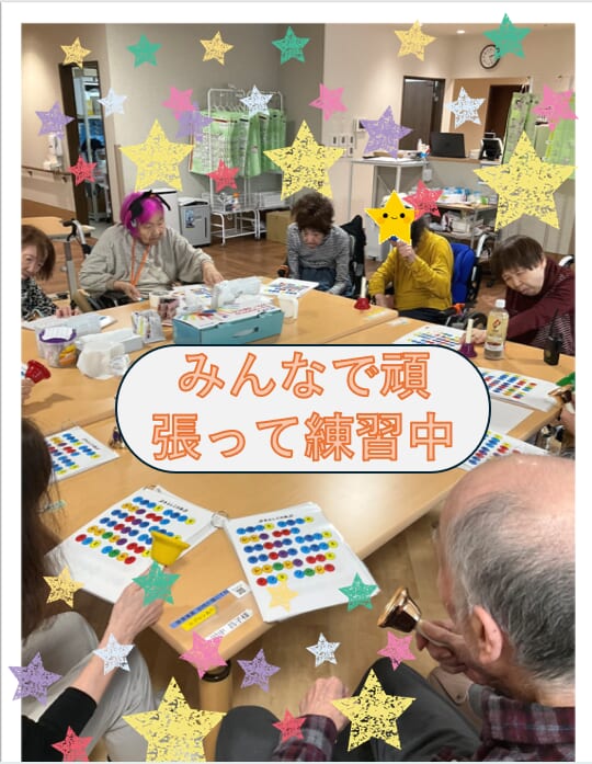 利用者様でハンドベル部(通称リンリン♡)を結成し、皆様の前でお披露目するために