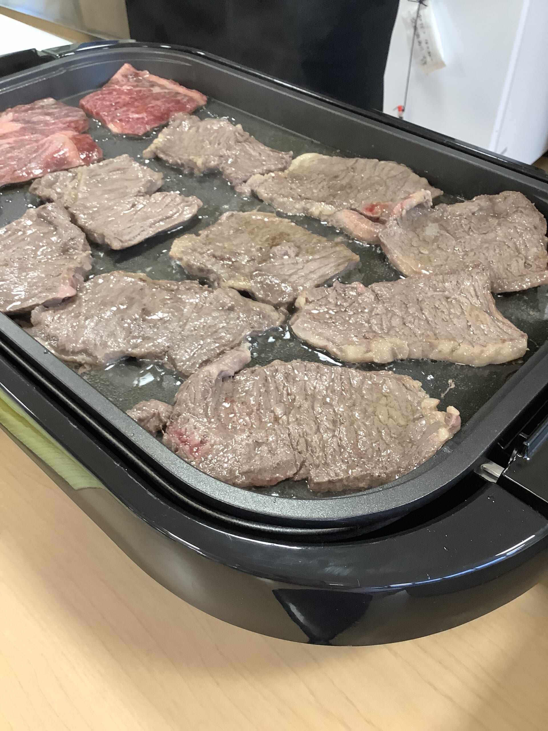そのステーキ肉を厨房スタッフさんがご利用者様の目の前で焼いて下さいました!
