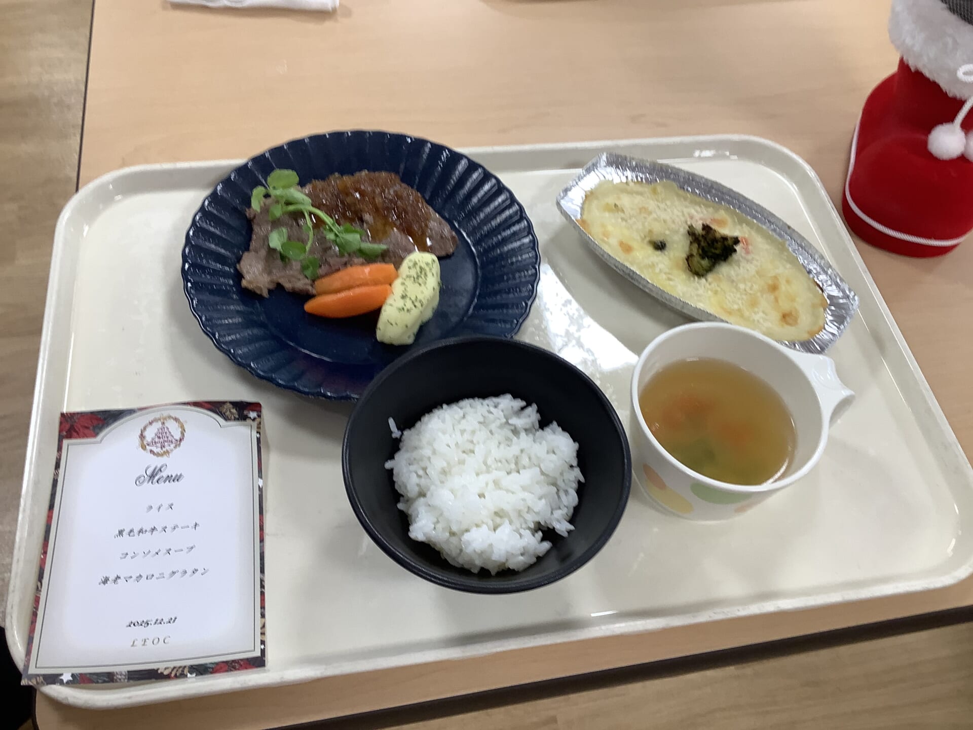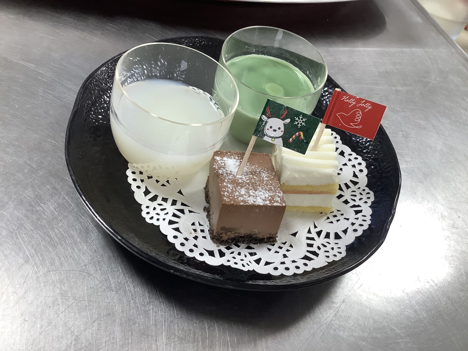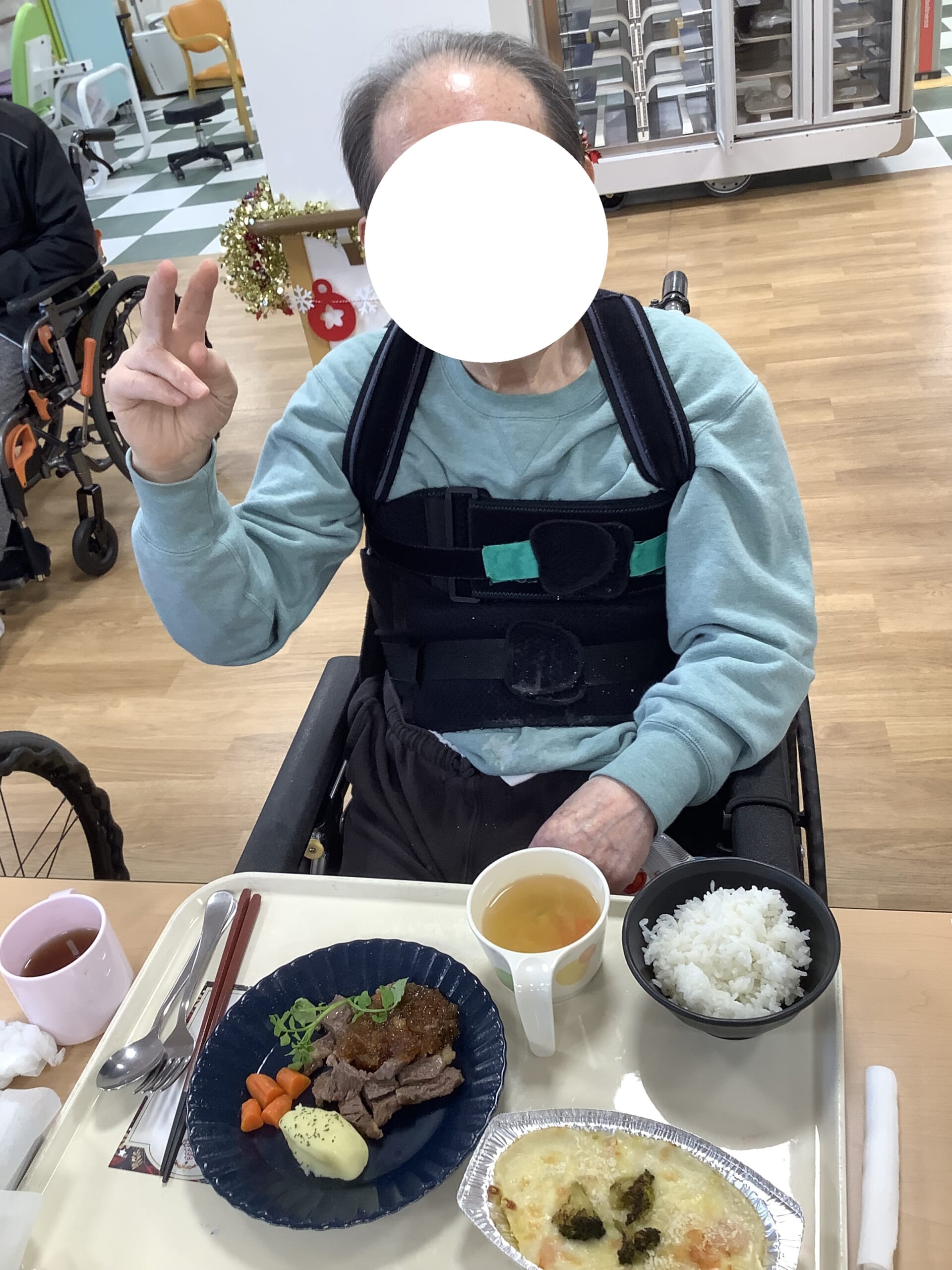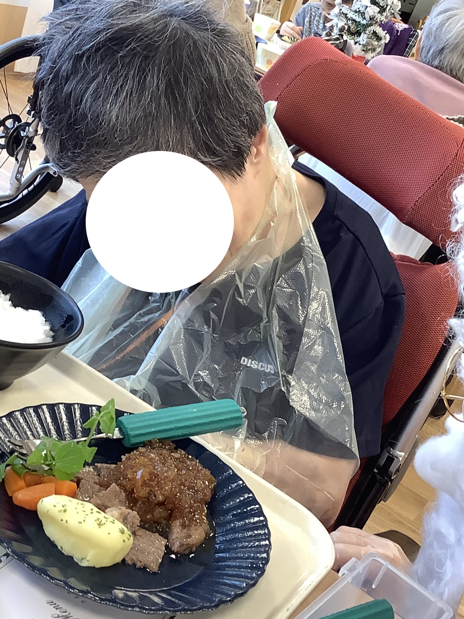 クリスマス会は中止になってしまいましたが、クリスマス特別ランチとケーキバイキングのみ感染対策を行いながら、ご利用者様に楽しんでいただくことができました🥩🍰