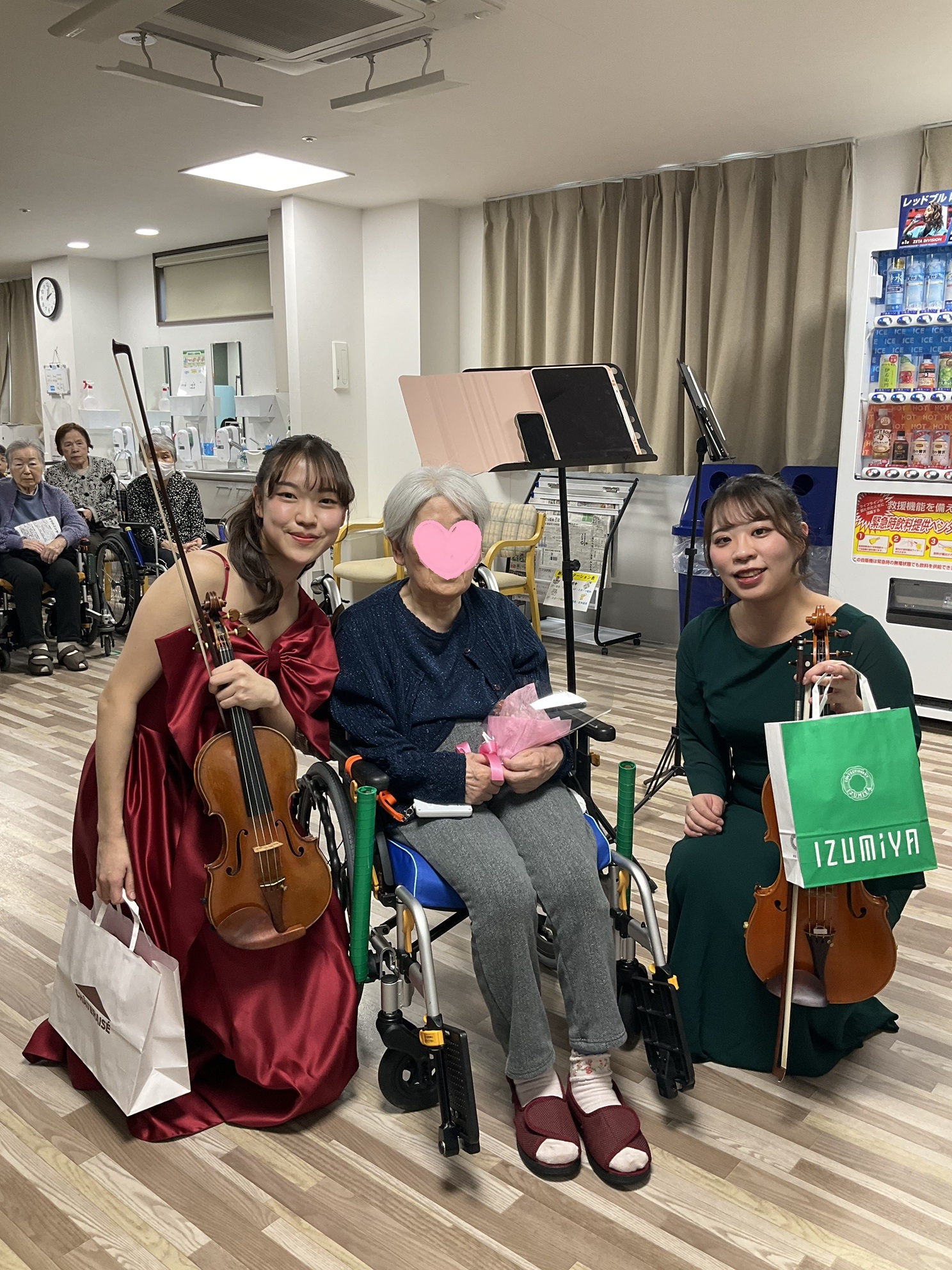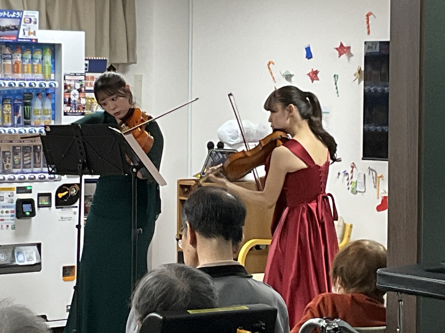 ご利用者様のお身内で芸術大学に通われているお孫様と、楽団でご活躍されているご友人による、ヴァイオリンとヴィオラの素敵な演奏会を開催していただきました!