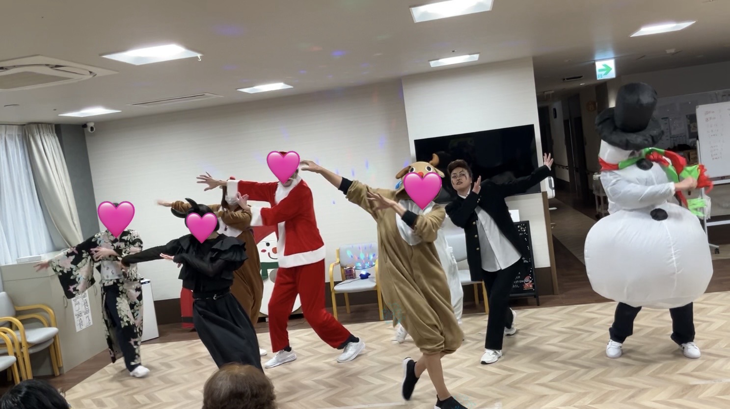 クリスマス会では仮装をした職員が『ダンシングヒーロー』を踊ったり
