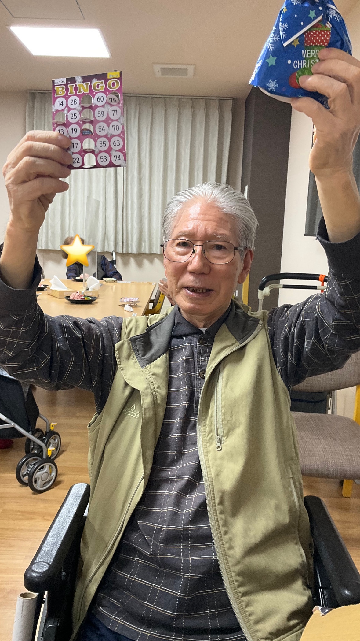 秋田サンタがやって来たり、ビンゴ大会を行ったりとスタッフによる出し物で利用者様も楽しんでいる様子や笑顔が見られていました☺️