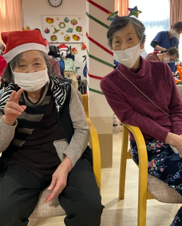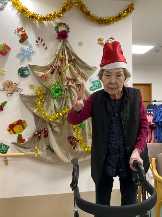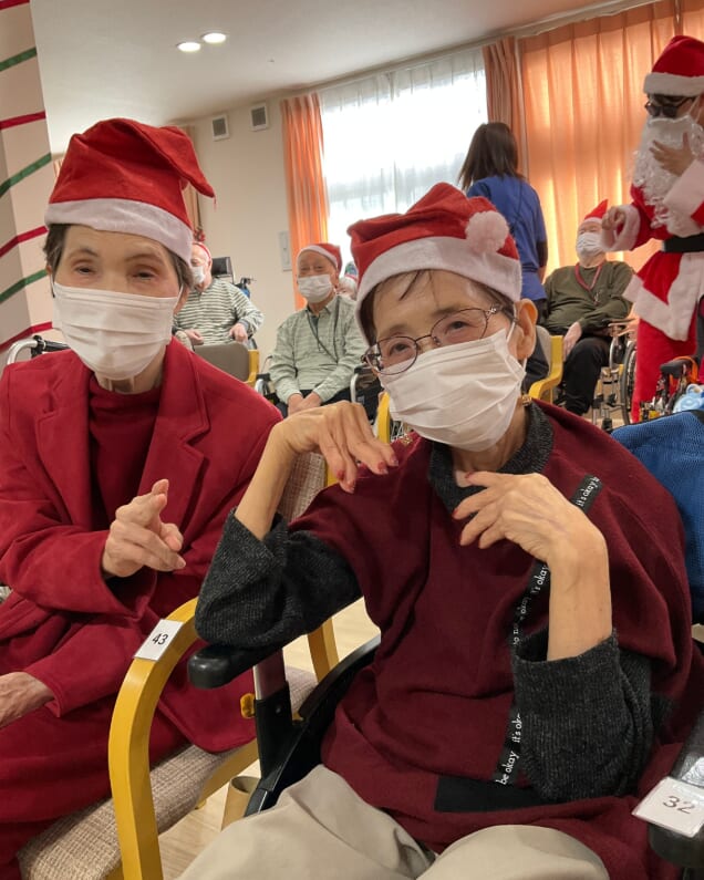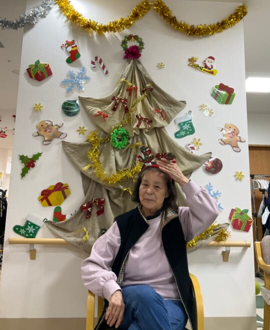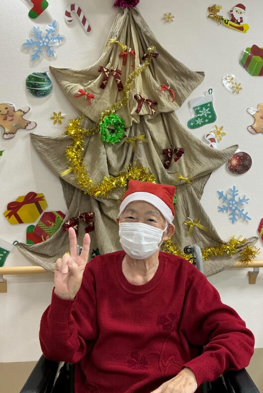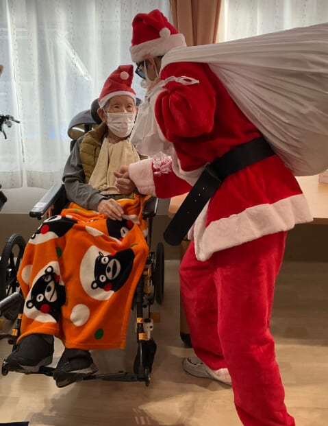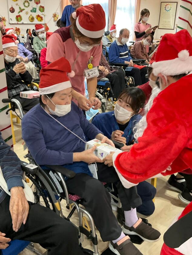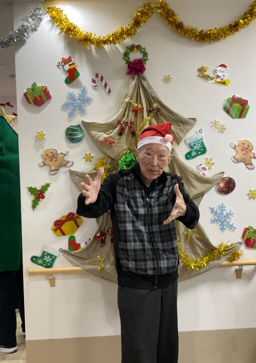 ミニゲームのくじ引きがあり、ひざ掛けなどのプレゼントが配られ、当たった品を手に取りながら喜ばれるご様子がみられました。終始にぎやかなクリスマス会となりました。