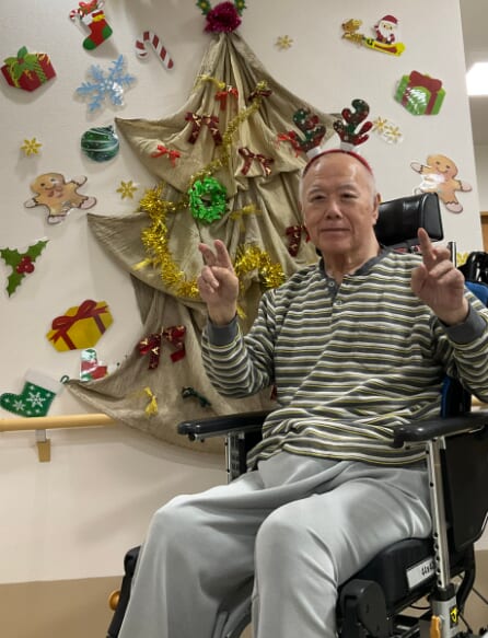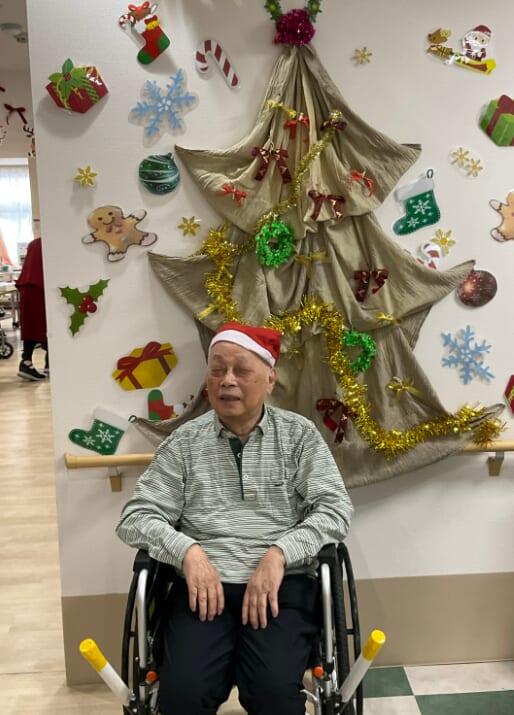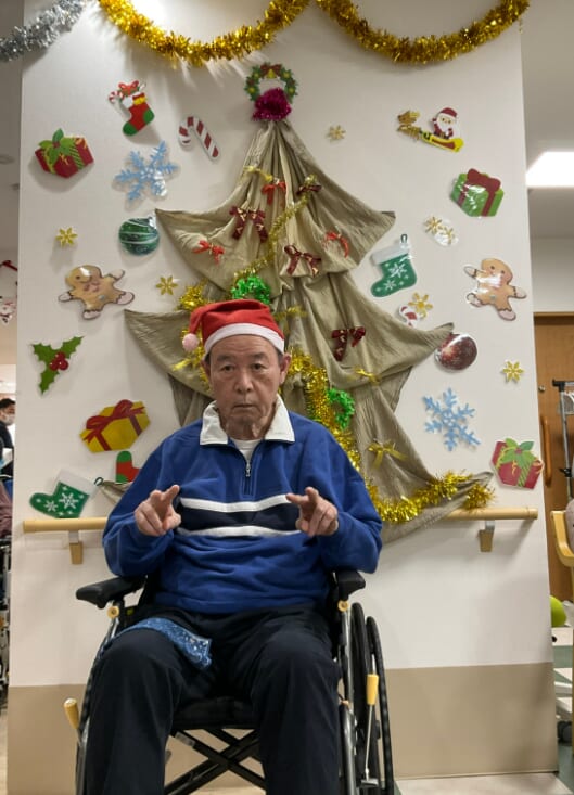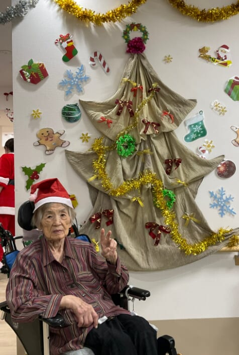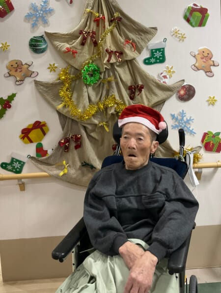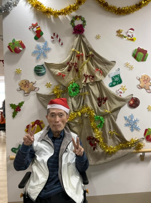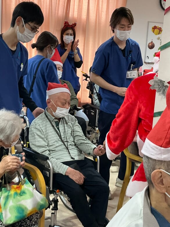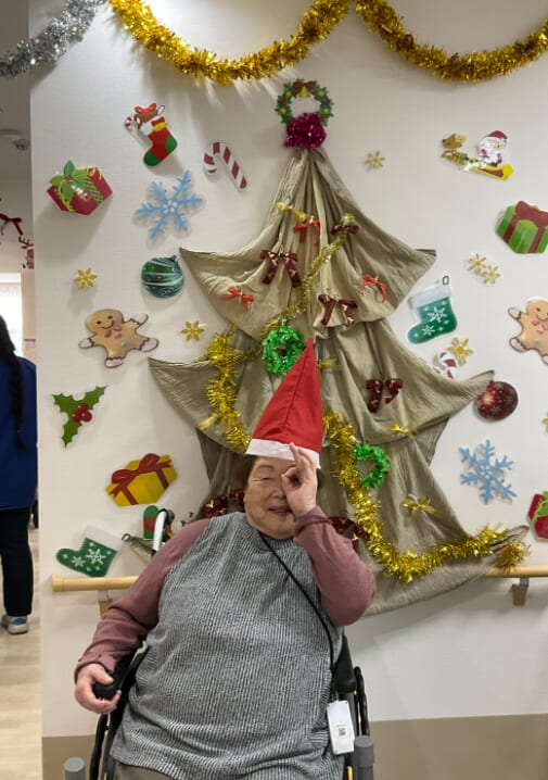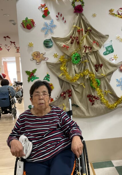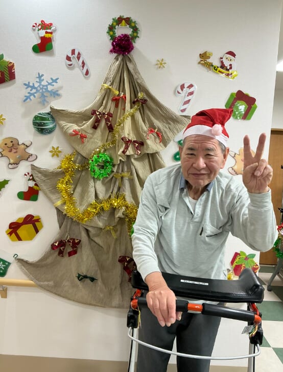 ミニゲームのくじ引きがあり、ひざ掛けなどのプレゼントが配られ、当たった品を手に取りながら喜ばれるご様子がみられました。終始にぎやかなクリスマス会となりました。