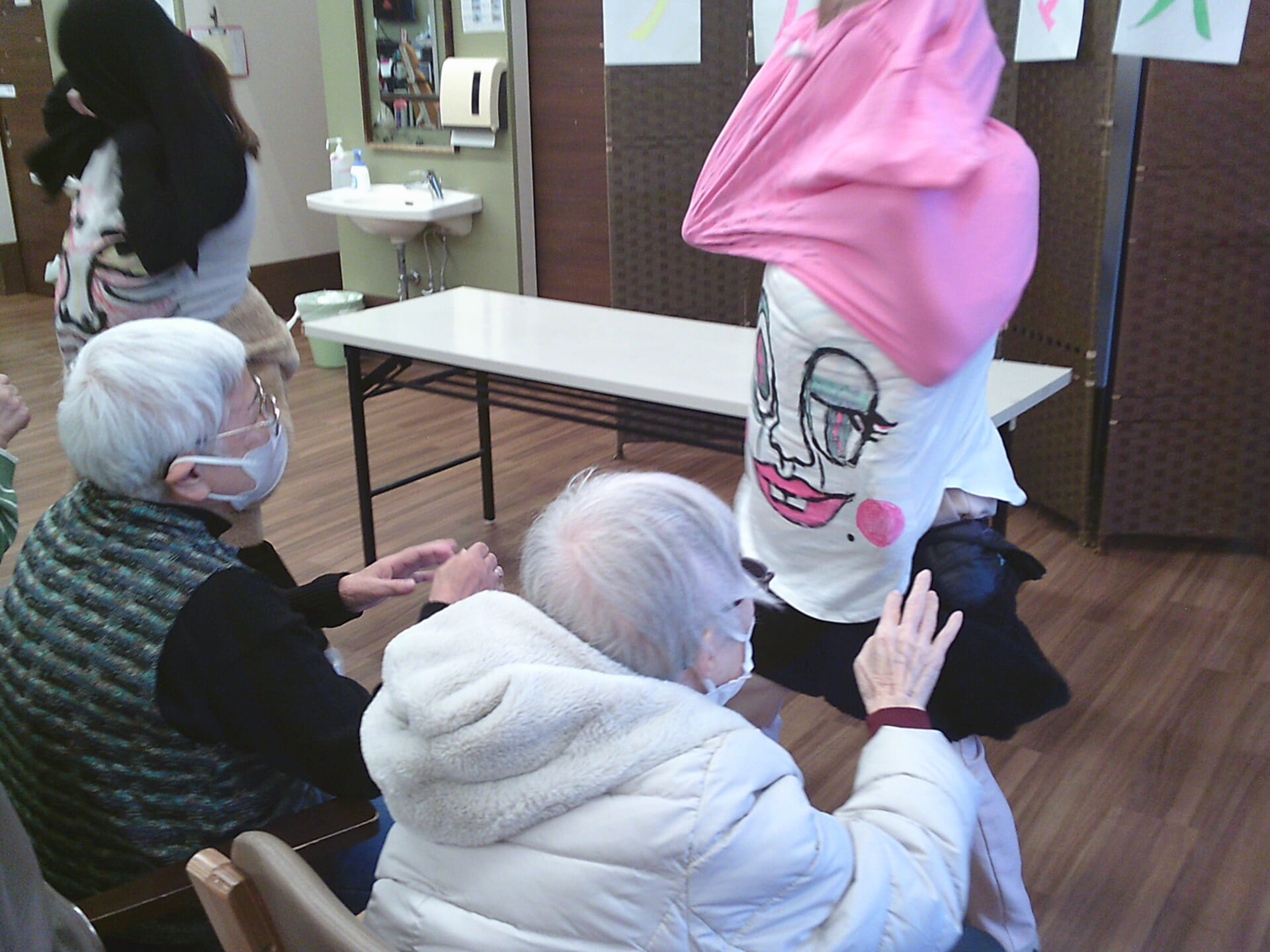 職員による出し物、二人羽織・楽器演奏・腹踊りをしてくれました!