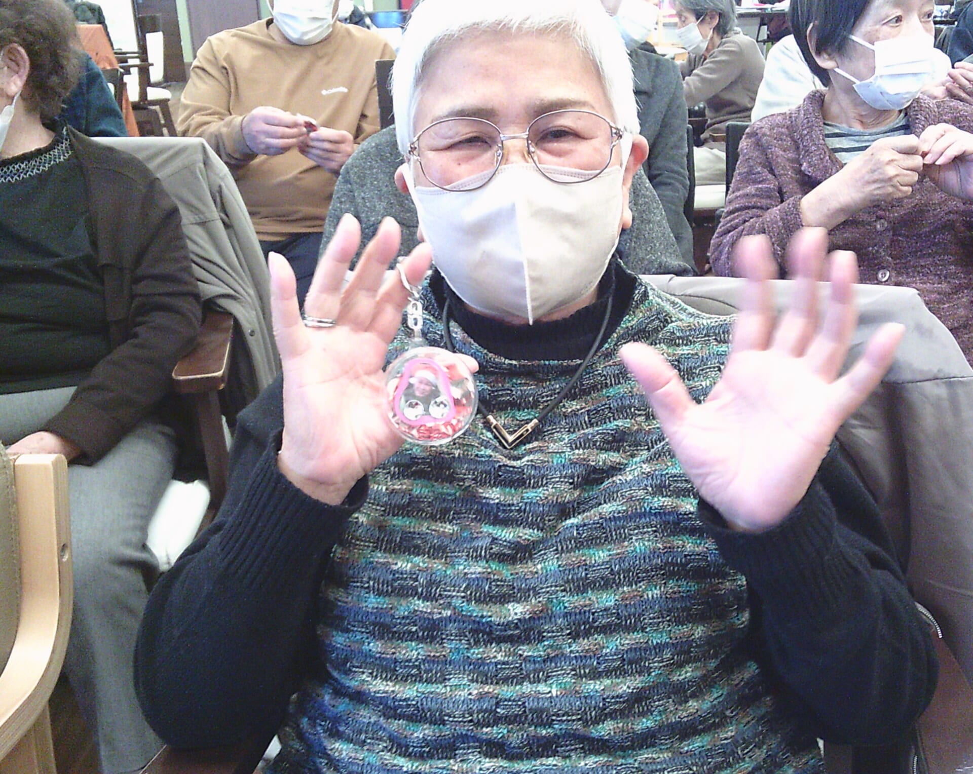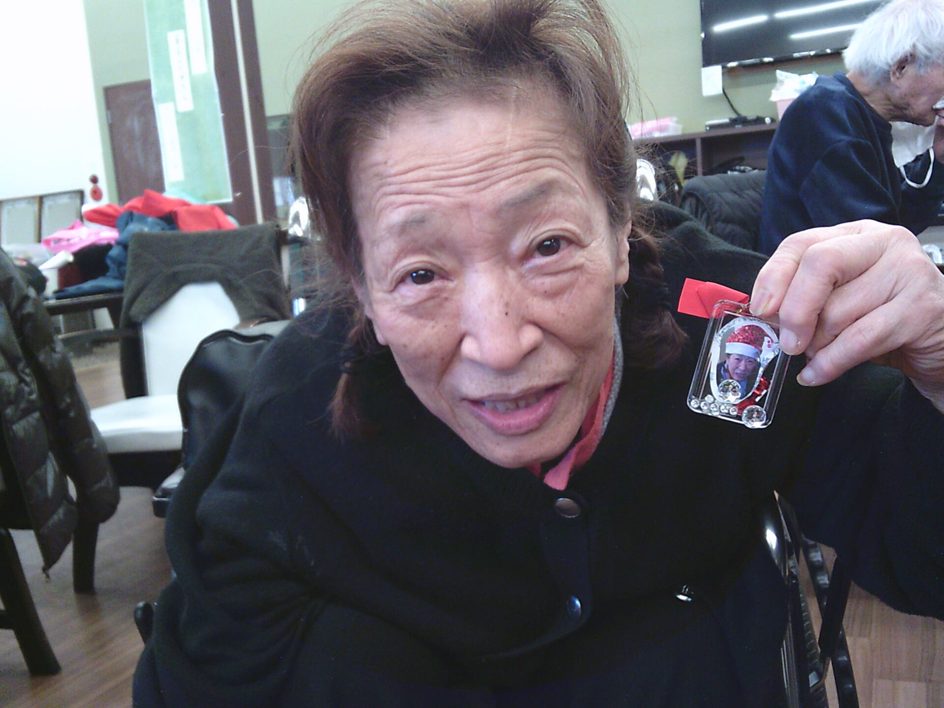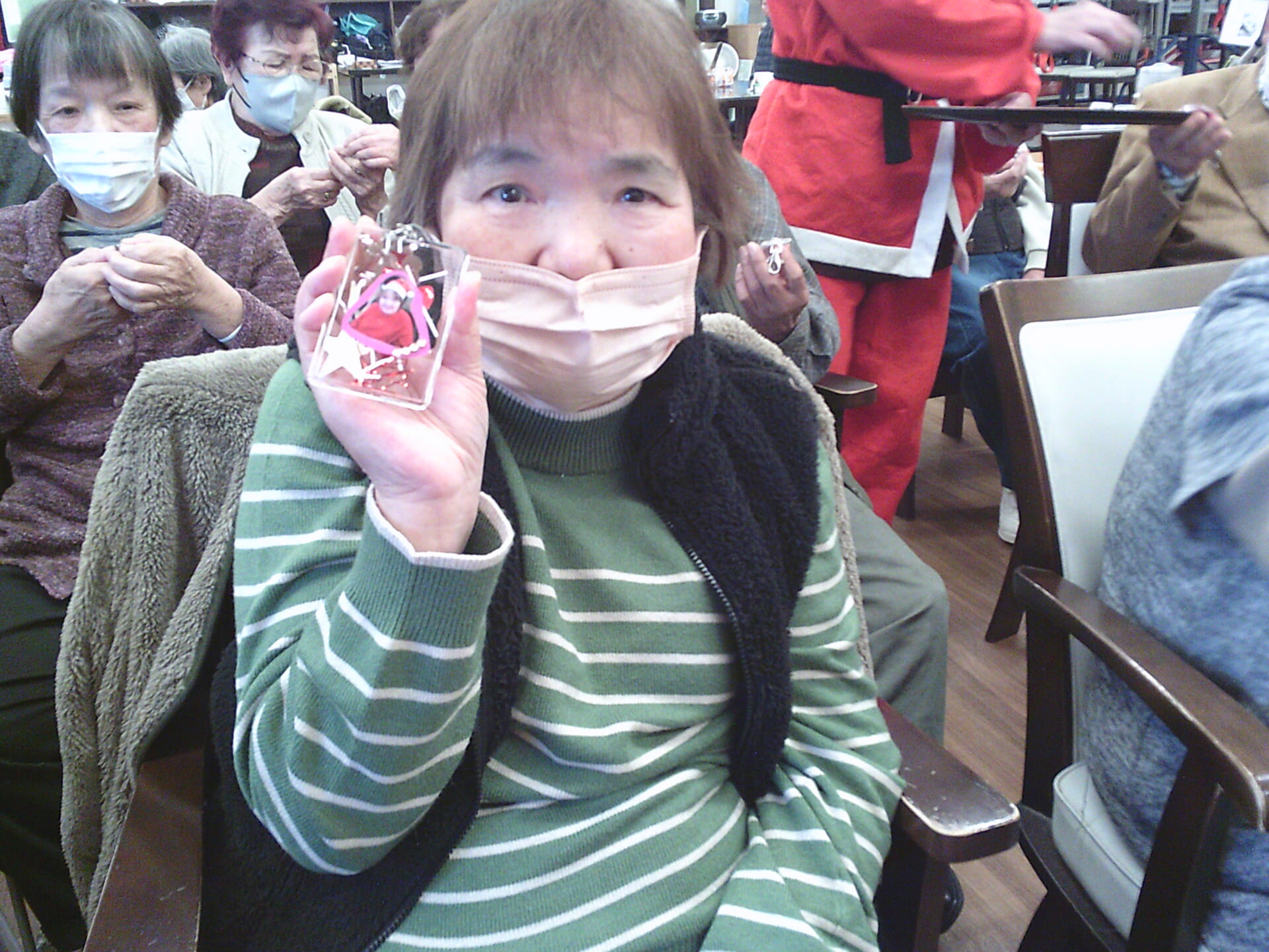 サンタさんから皆様へ、顔写真入りのキーホルダーが渡されました。