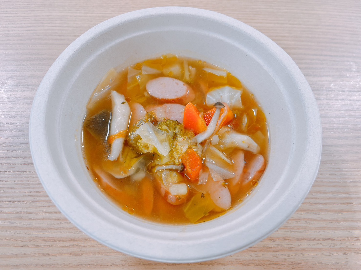 じゃがいも・トマト・ナス・ブロッコリー・にんじん・キャベツ・しめじ・ウインナーが入って、とっても具沢山!!