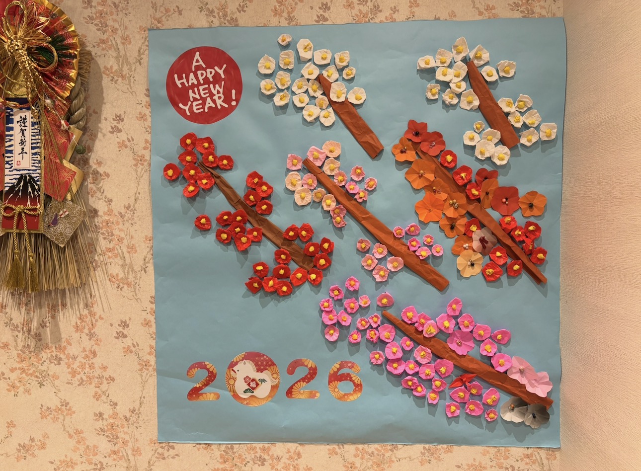 12月中に皆様が工作してくださった立派な鳥居や華麗な花々がお客様をお出迎えしております。今年は午年🐴何事もウマくいく!・・・ということで本年もよろしくお願いいたしますm(_ _)m