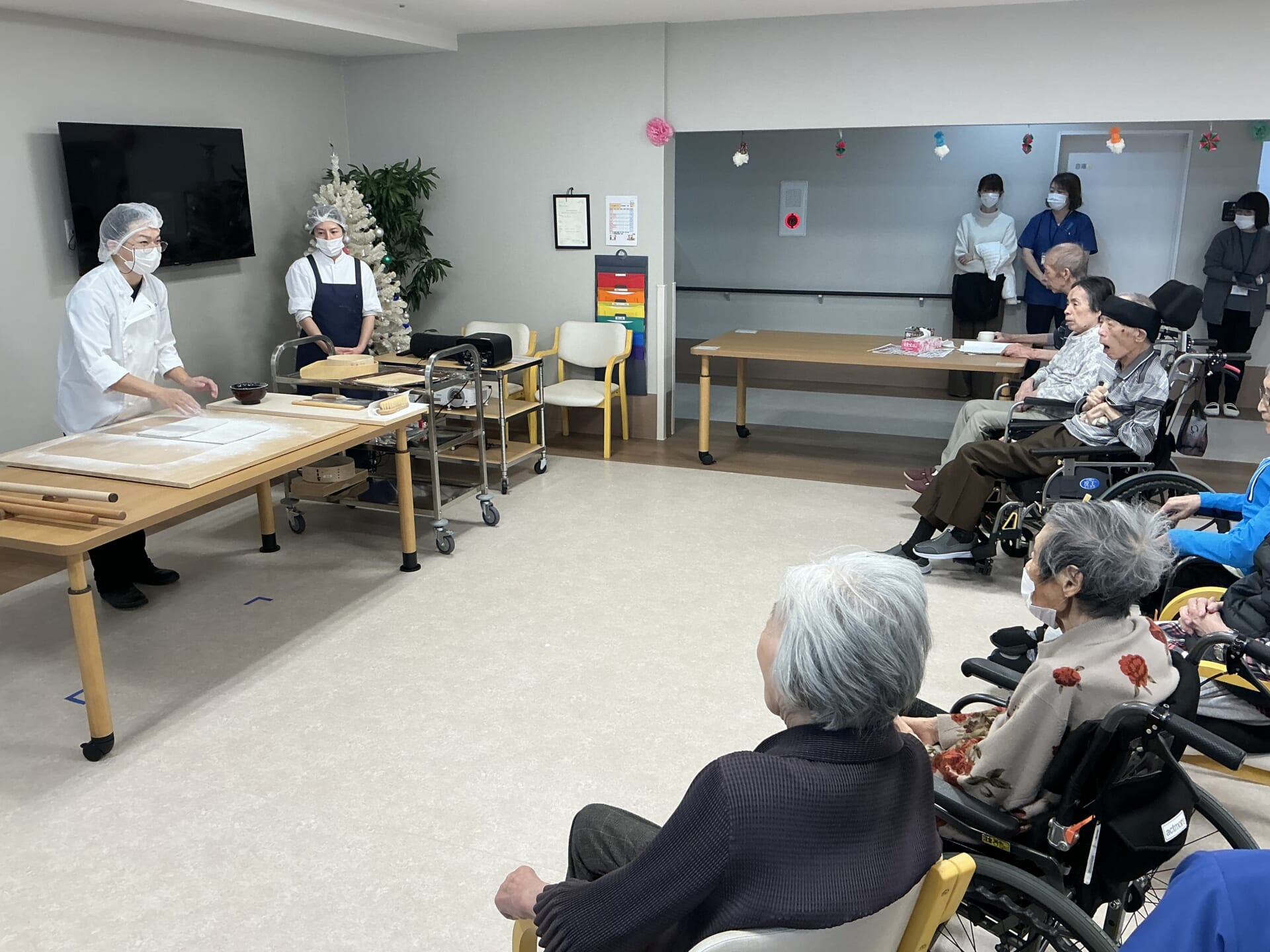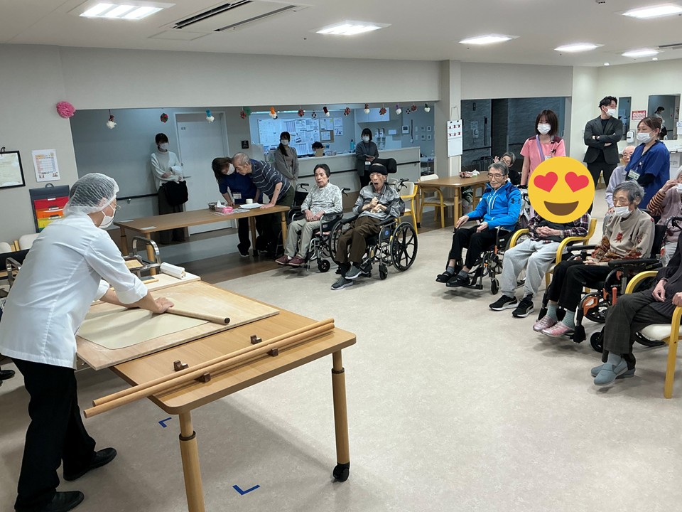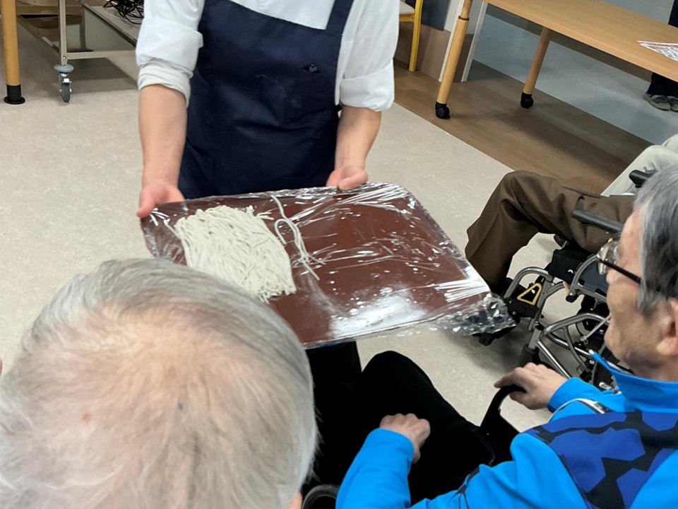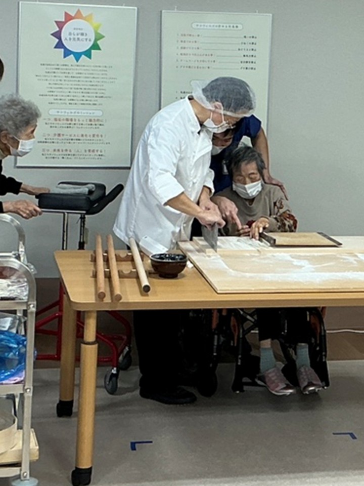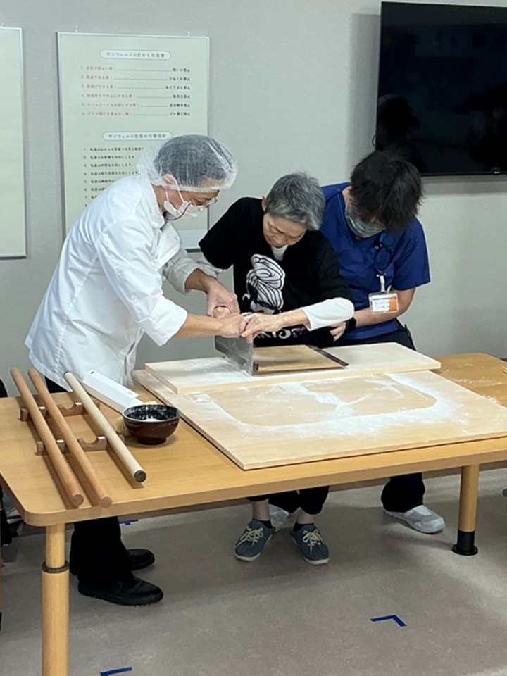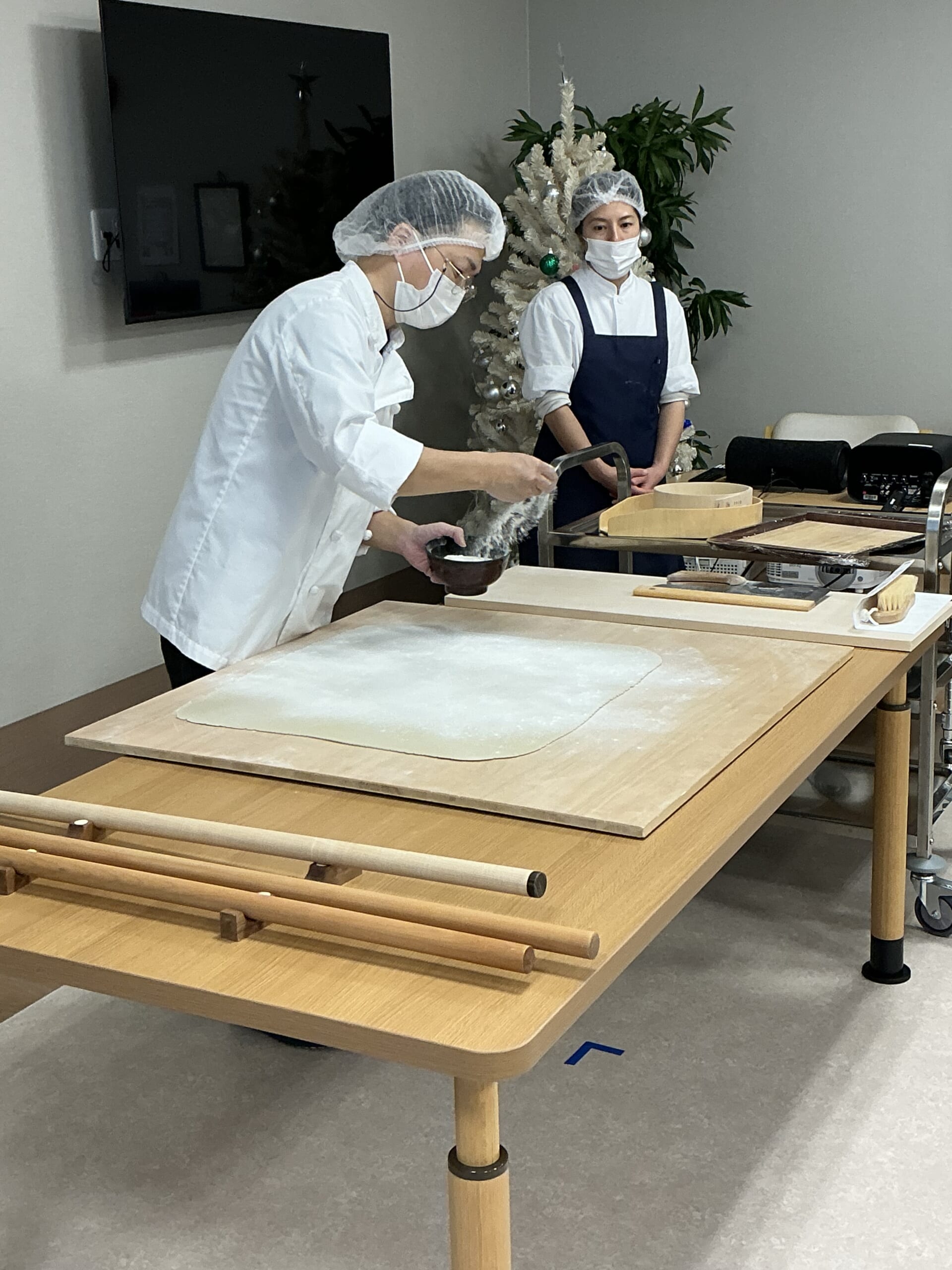 さて、昨年の11月26日には、レオック様に依頼し、手打ちそば職人に来ていただき、