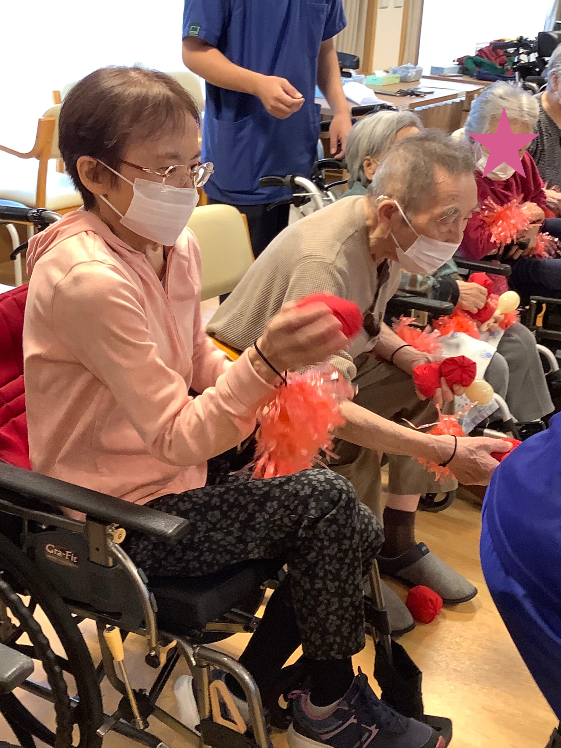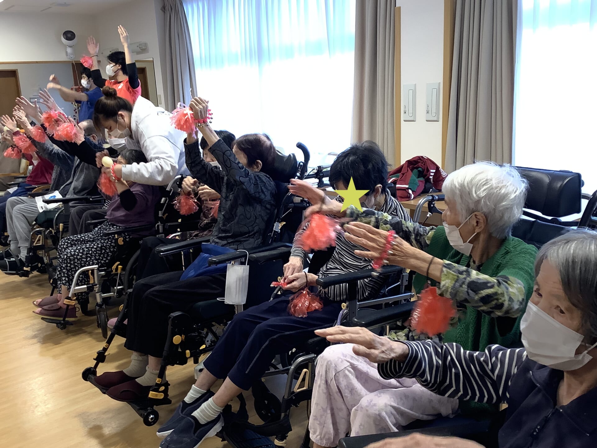 皆さん手に手作りのポンポンをつけて準備万端です😎✨