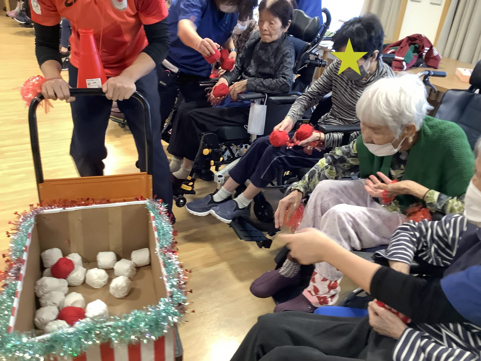 皆さん狙いを定めて箱に入れています!真剣な表情です🎯