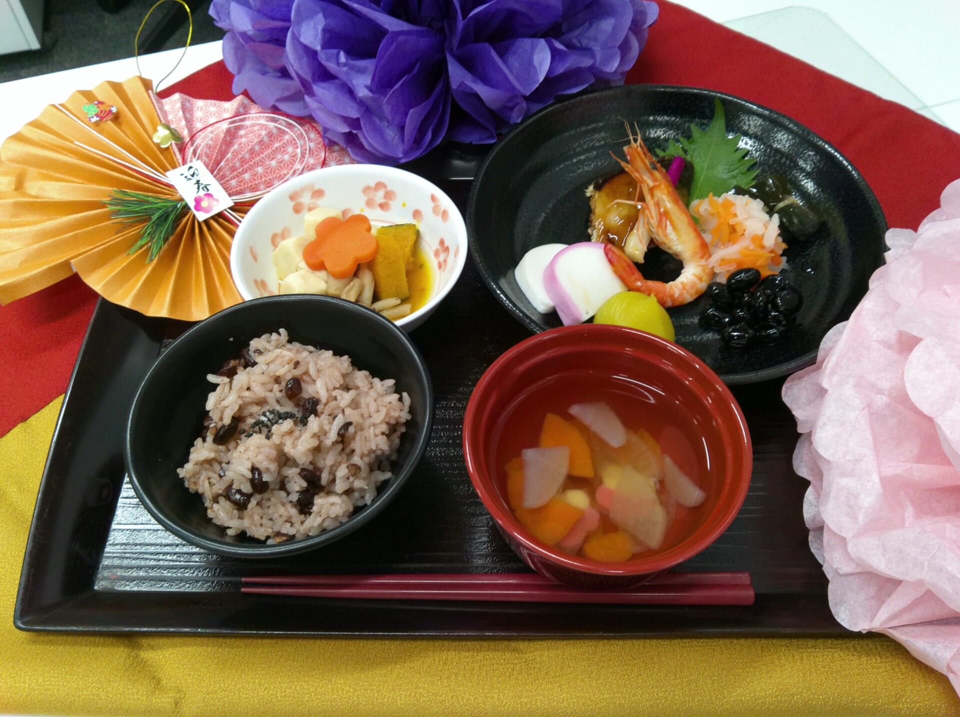 1月1日は御節料理や赤飯などお正月を感じられる彩り豊かなメニューでした♫