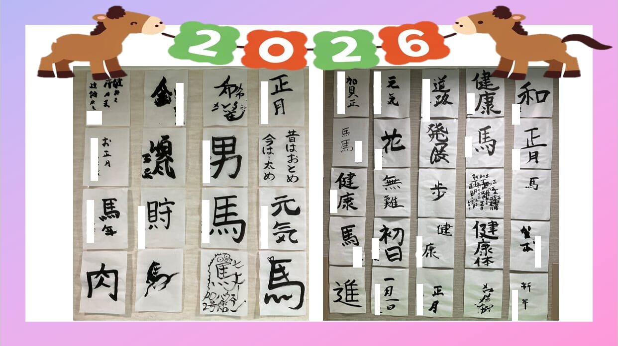 みなさん(職員も含め)思い思いの文字を書いておられます🎍