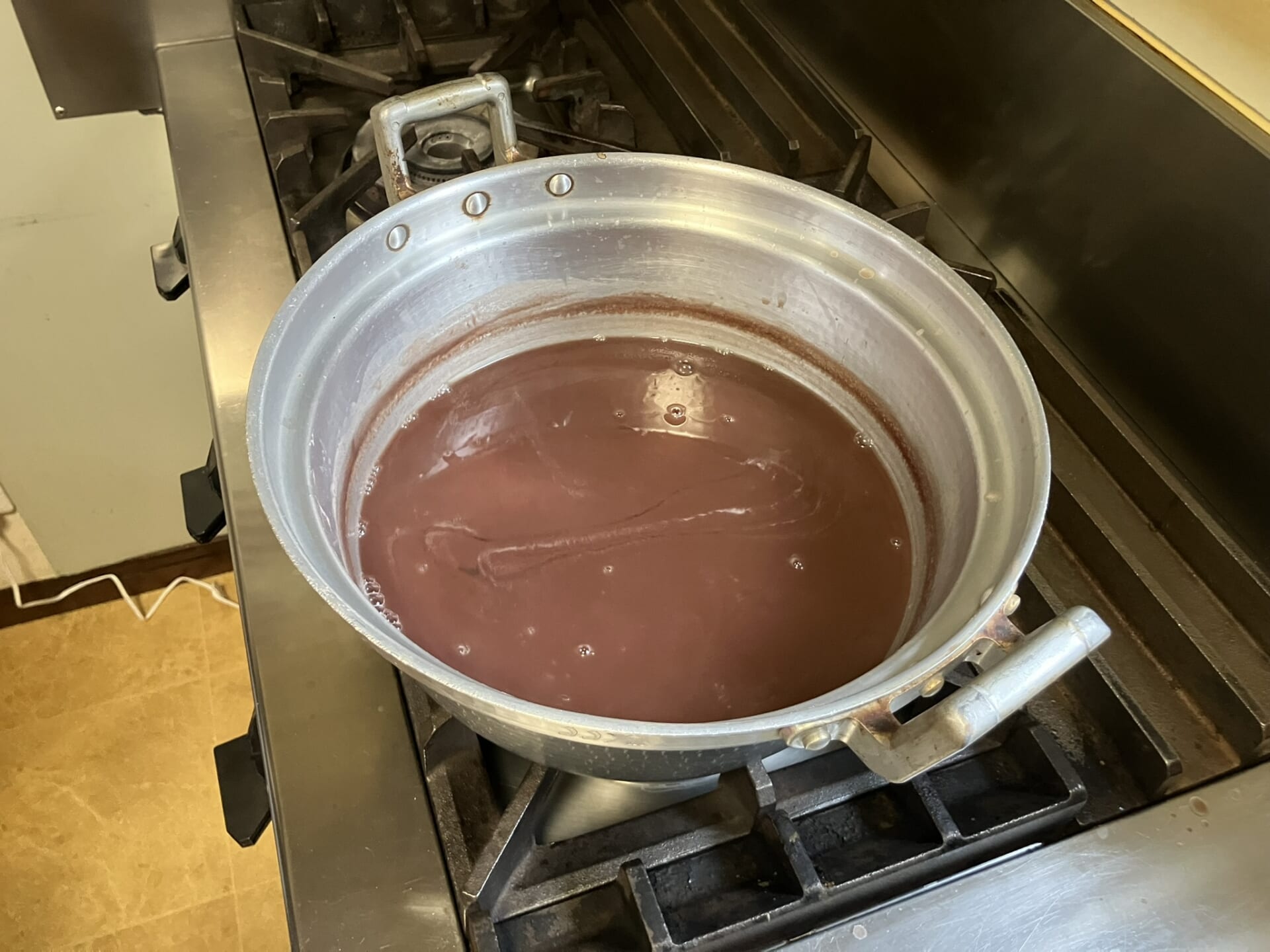 具材は豆腐白玉団子を使用してお汁粉もしっかりと温めていきます。