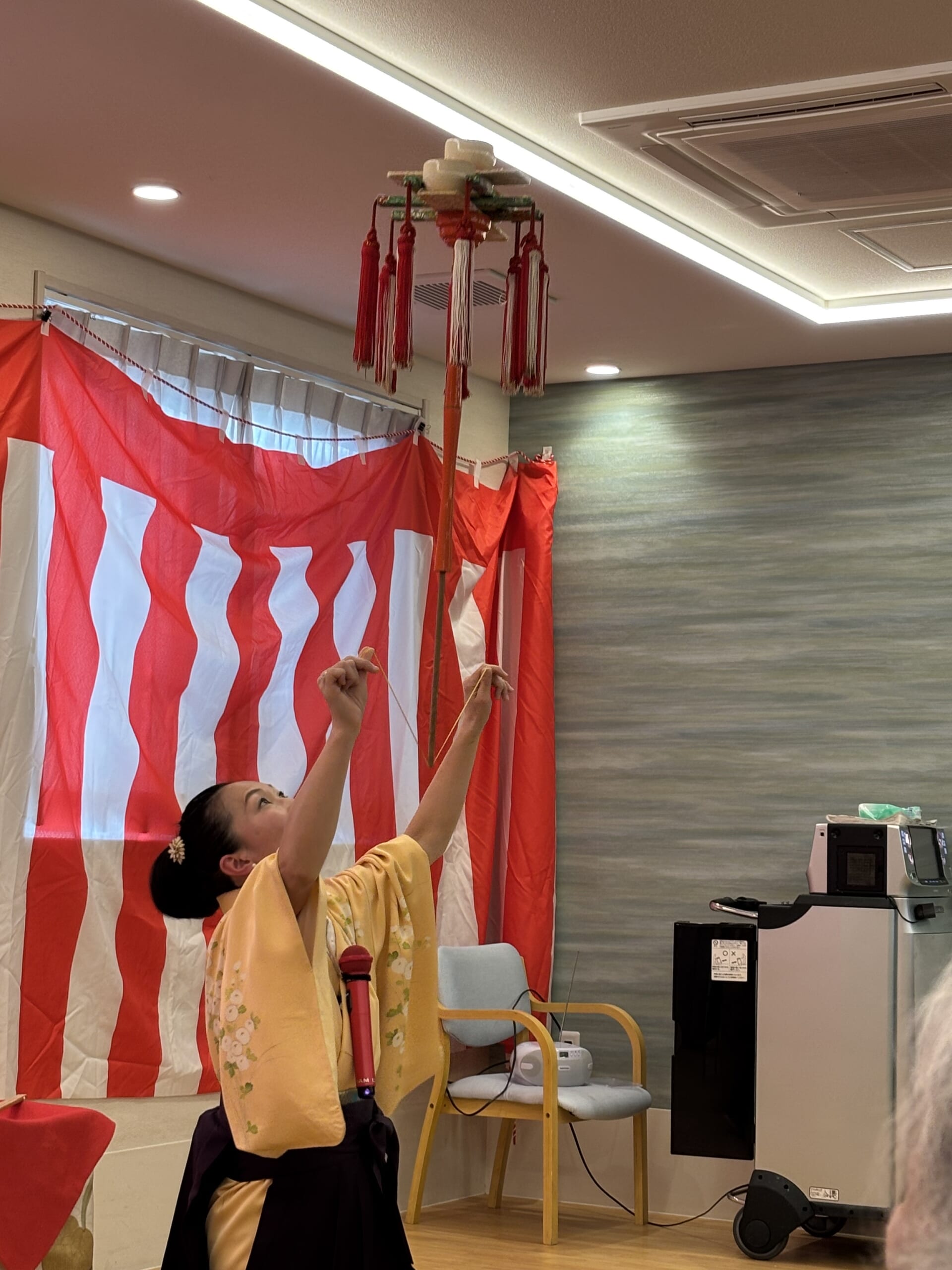 今年のPDH足立の新年会はお正月の風物詩!染之助・染太郎さんの”おめでとうございます!”で有名な縁起の良い”太神楽”を鏡味 味千代さんにご披露いただきました!