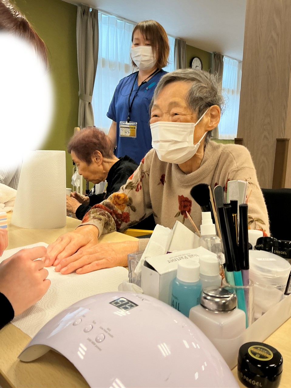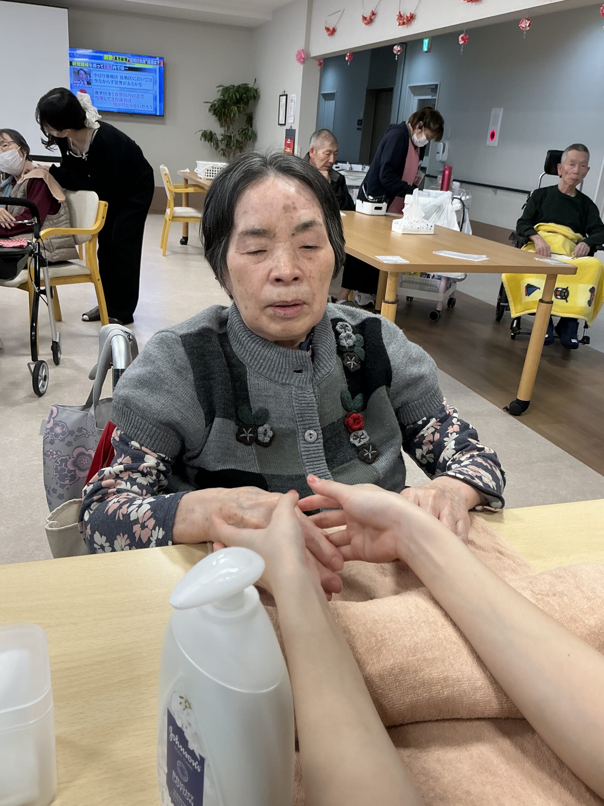 また、1月中旬には、学生ボランティアによるネイル・ハンドマッサージが