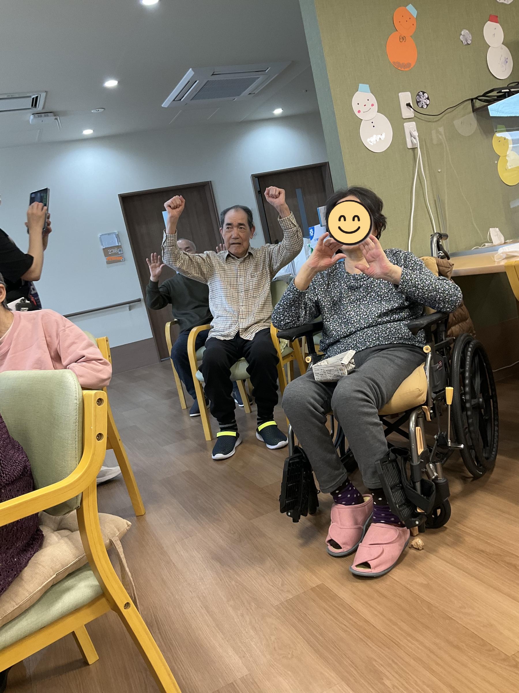 手拍子に合わせて、一緒に踊ります。豆まきに備えてしっかりと腕をうごかしていきますよ!みなさん軽快な動きです。