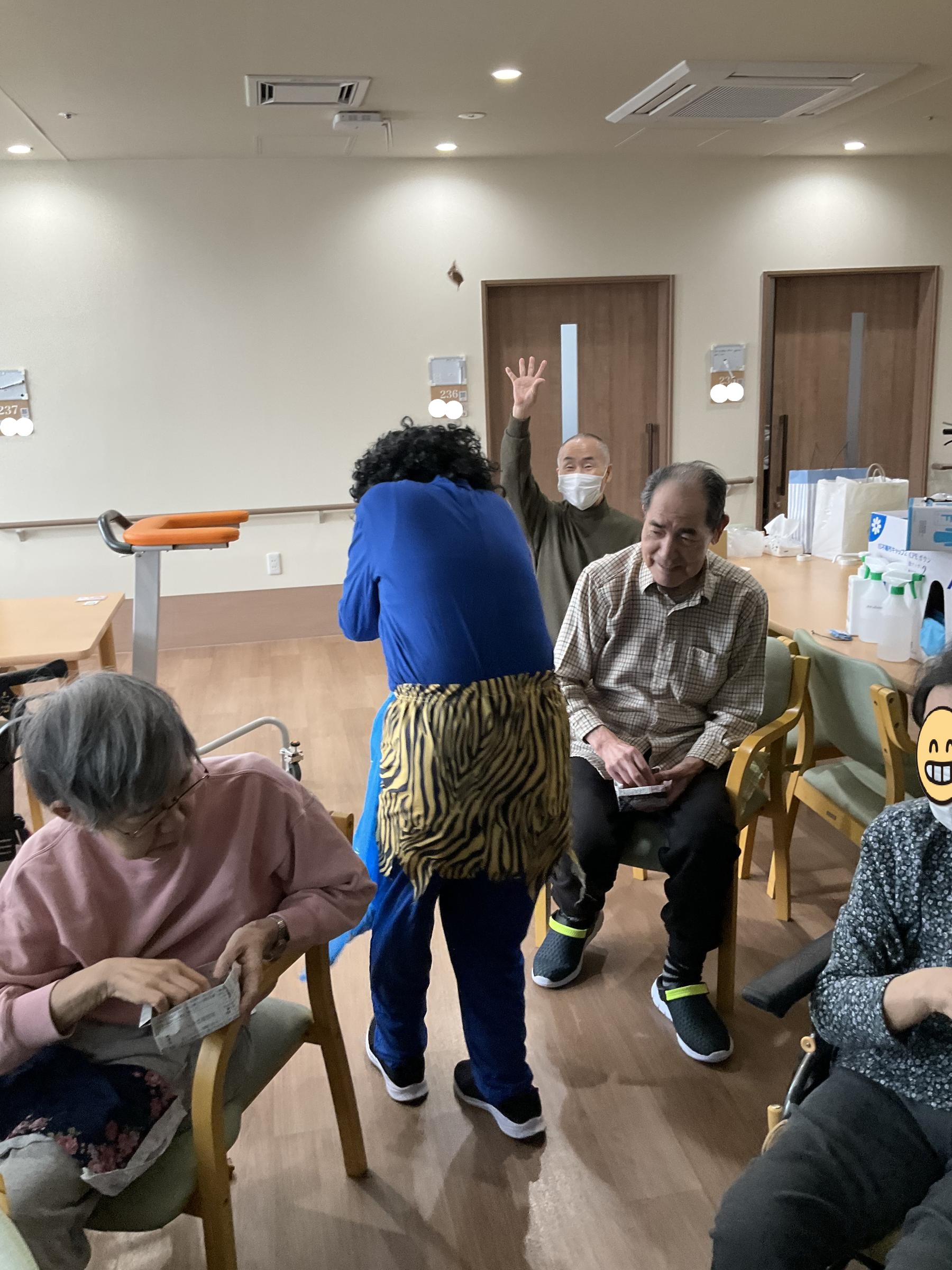 でも登場したかと思ったら、まずは「鬼のパンツ」を踊り出しました。曲に合わせて『みなさんもご一緒に』と誘っています。