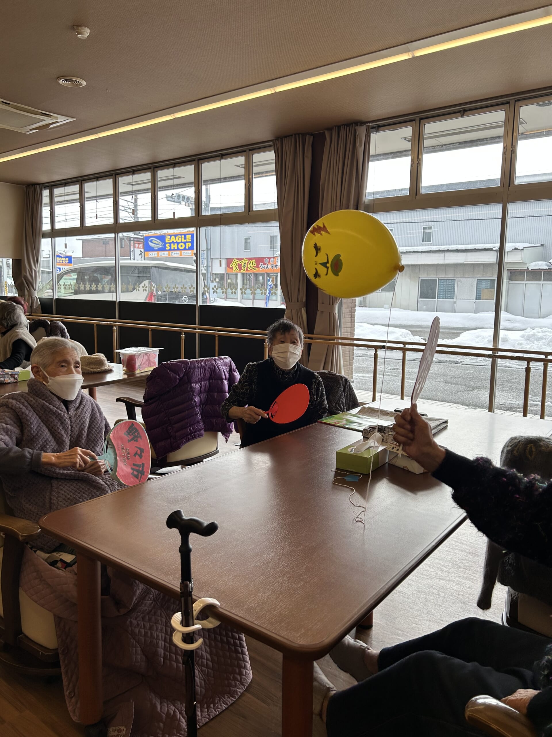 まずは上肢のトレーニングとして『風船羽子板』で運動です🎈