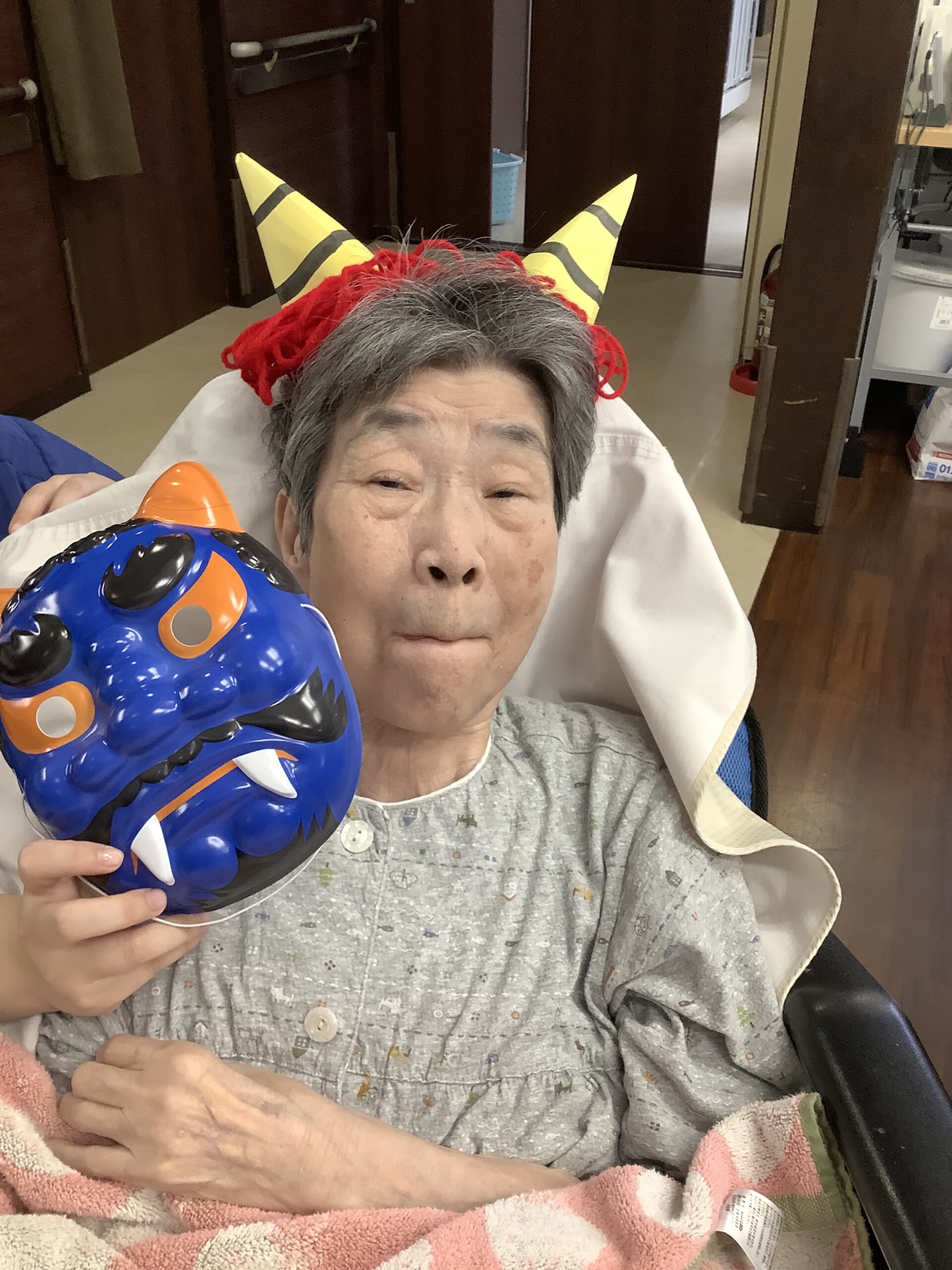最後は、鬼のお面をつけた入居者様の記念撮影し、今年の節分を締めくくりました。✨