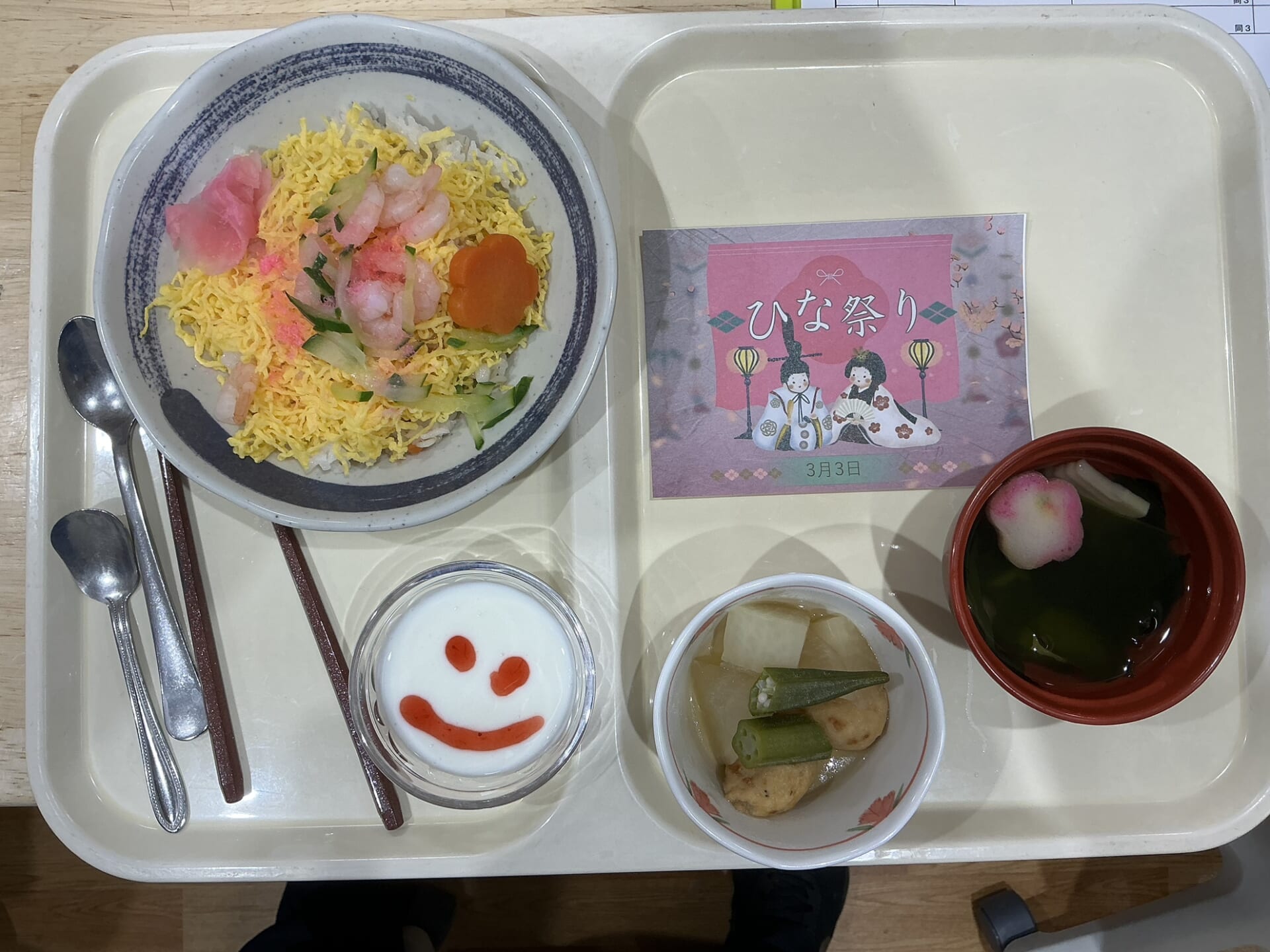 ちなみに、ひな祭りの昼食です!私も食べましたが、いろどりもキレイで味も美味しかったです!