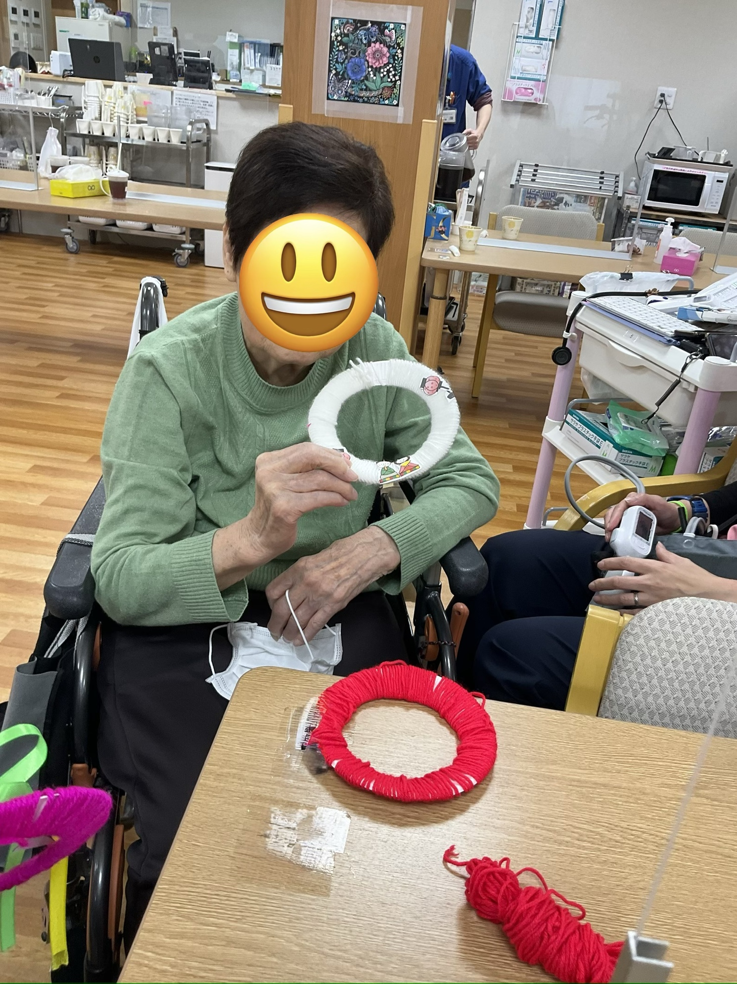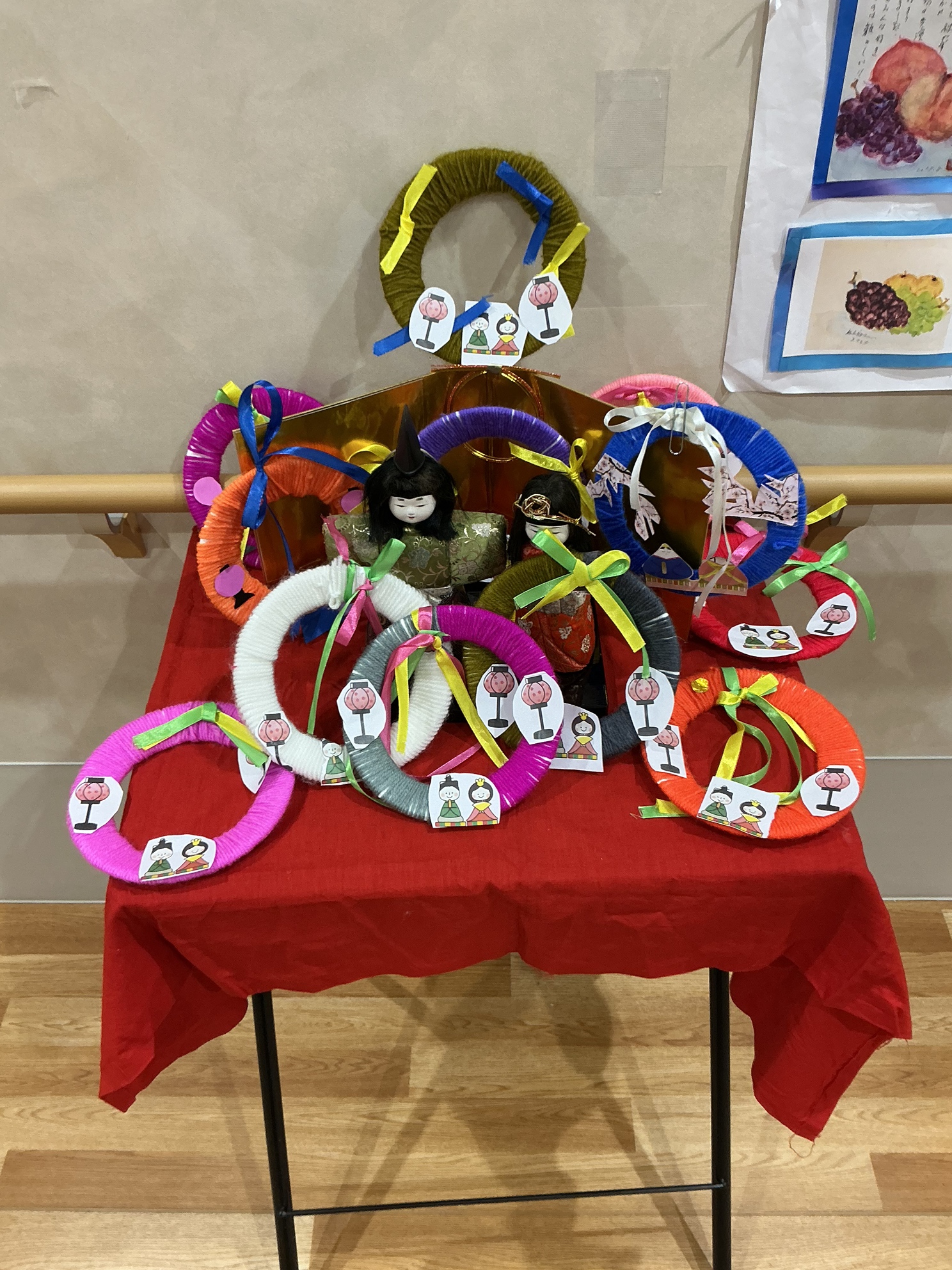 こんにちは!今年のひな祭りは、ご入居者様にリースを作って頂きました😊