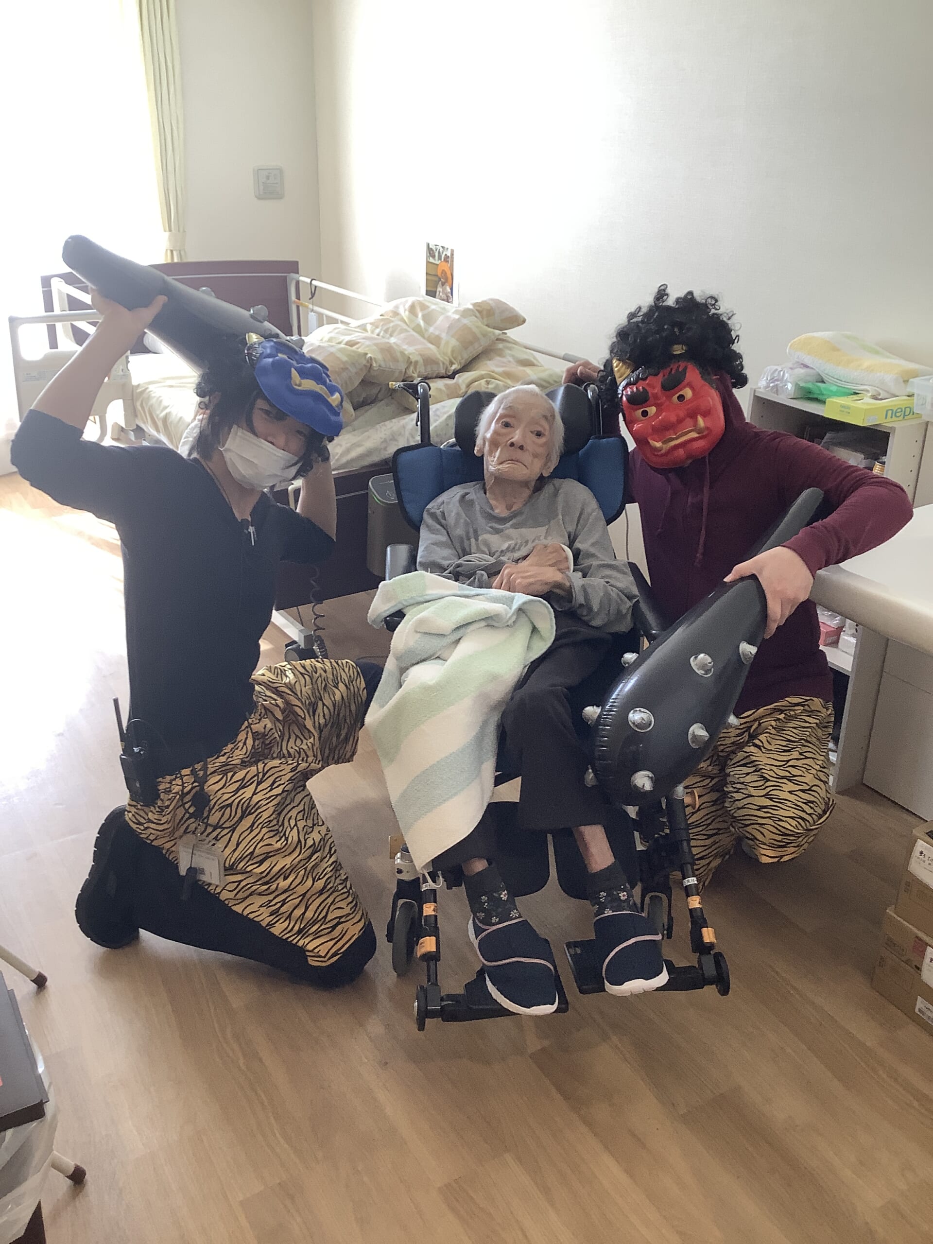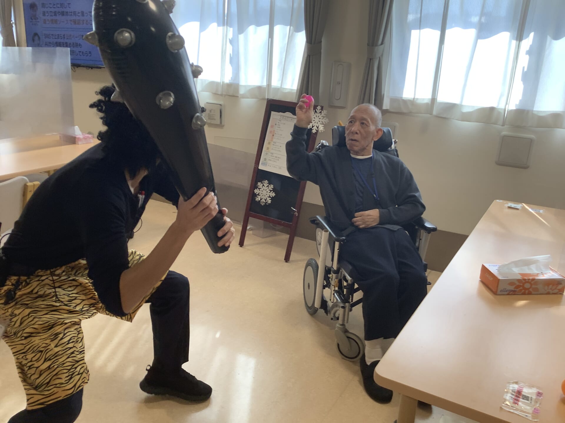 節分といえば「豆まき」が一般的ですが、当施設では安全と盛り上がりを重視した「板橋流」スタイルを採用しています。