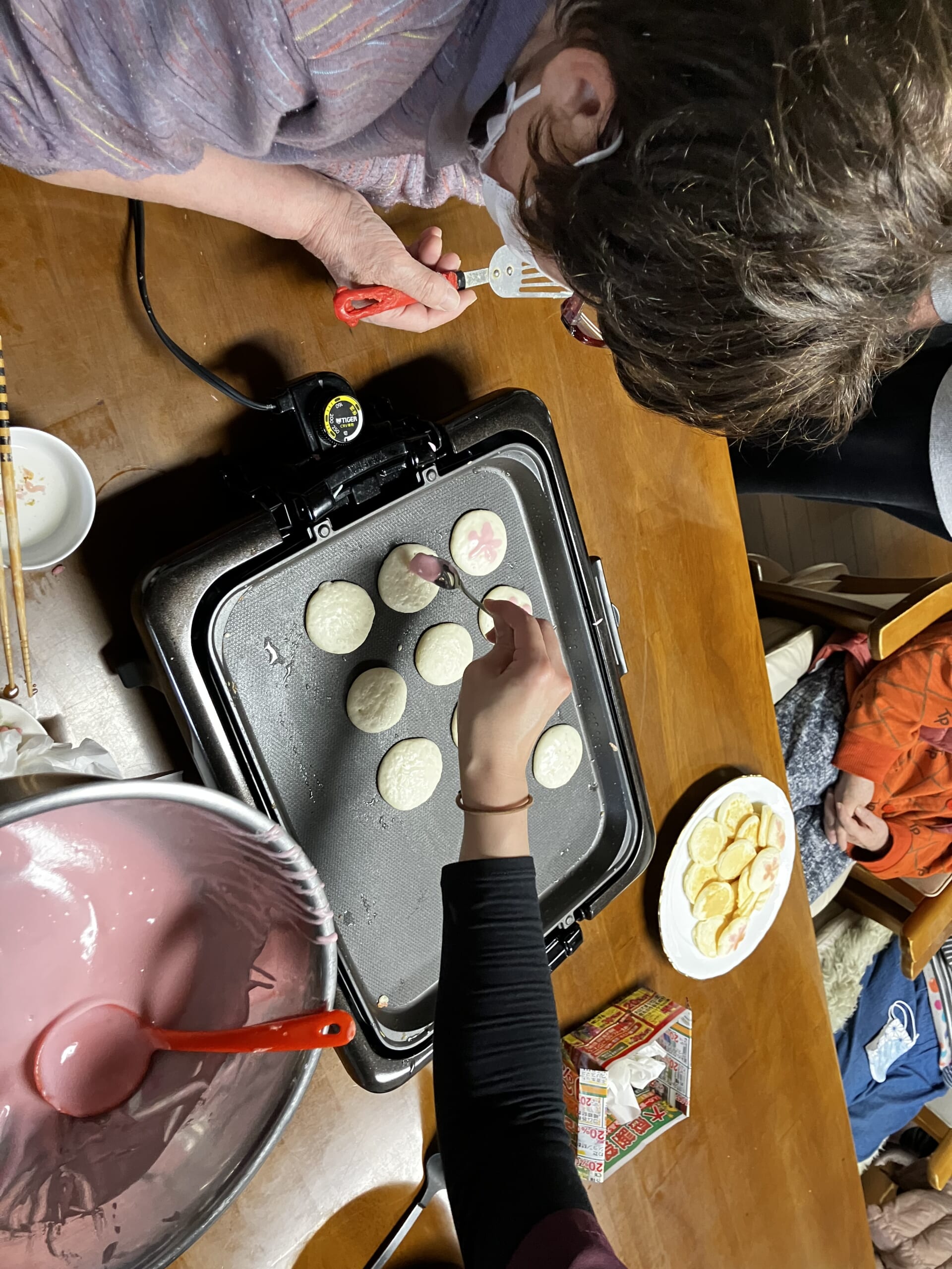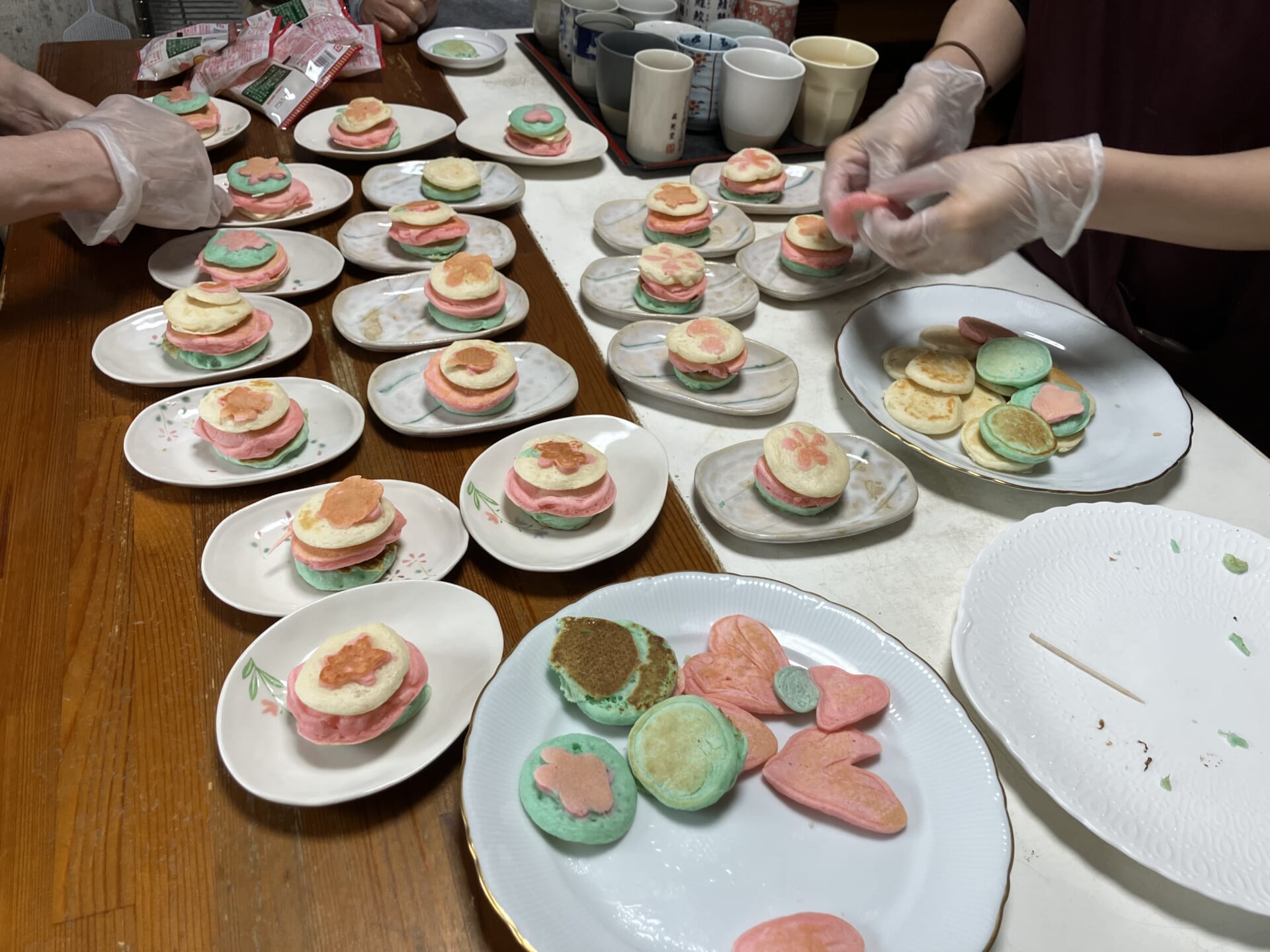 横には小さな雛あられもつけて、20人分のホットケーキが完成❣