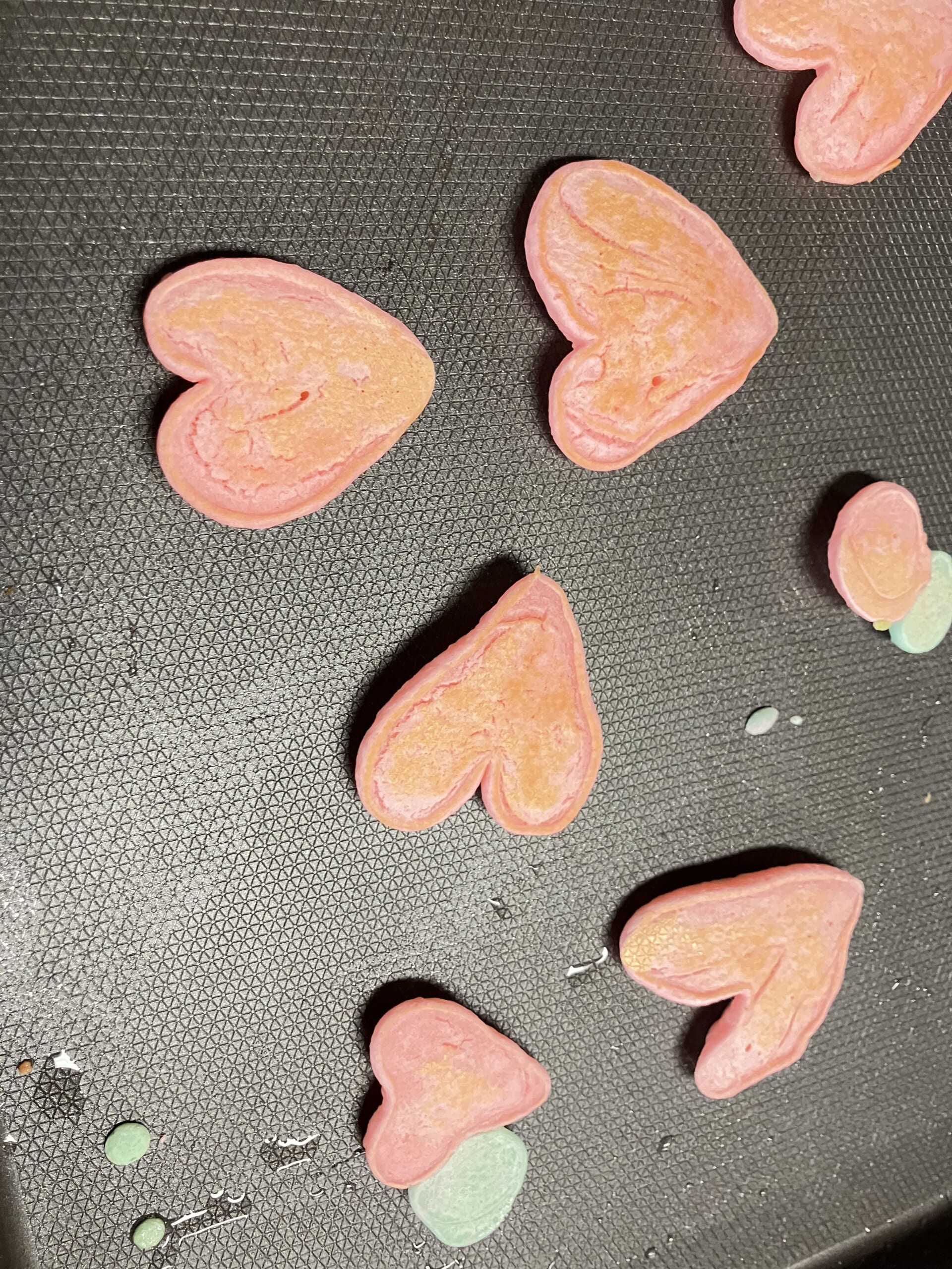 生地にしっかりと色をつけて、スタッフにより花柄やハートの形のホットケーキも作成💕