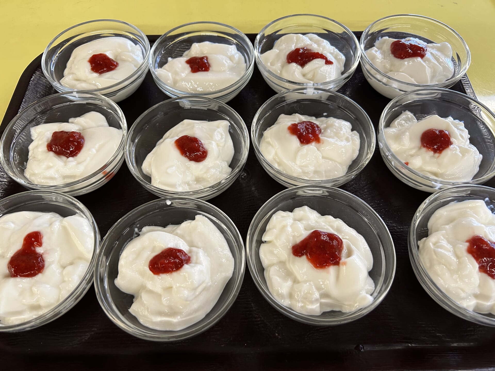 おやつにはパンナコッタにいちごソースがかかったものが出ました🍓