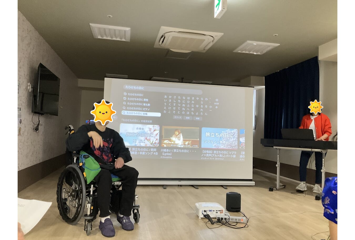 合唱中は職員の一人が演奏し、利用者様の一人が指揮をしてくださっています☤☤☤🎵