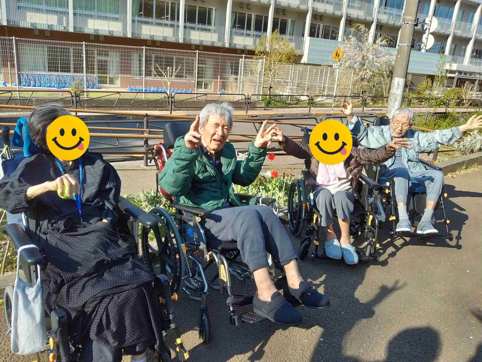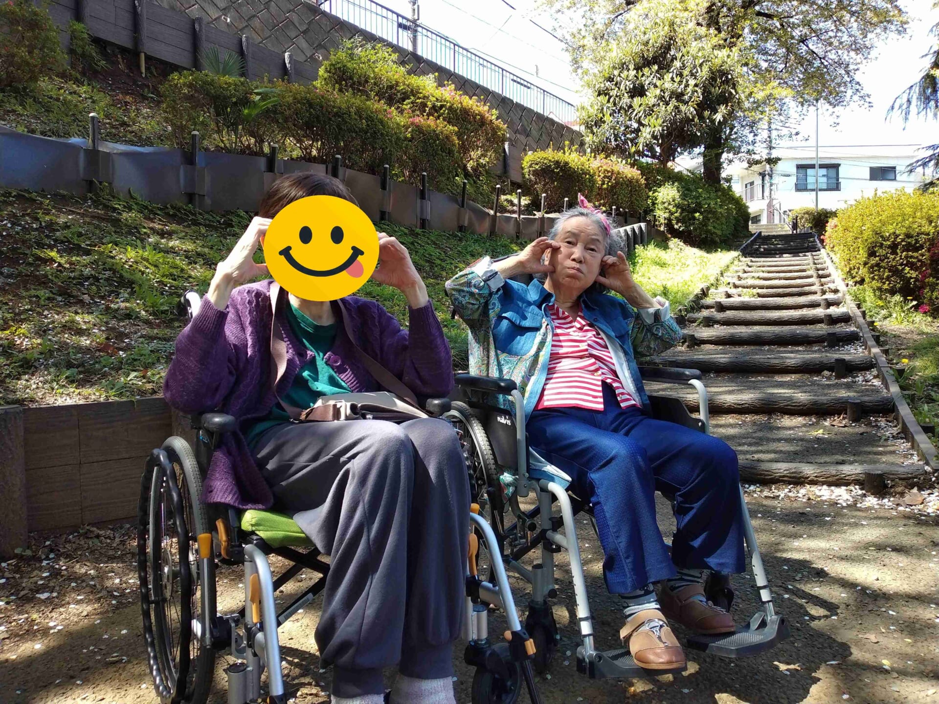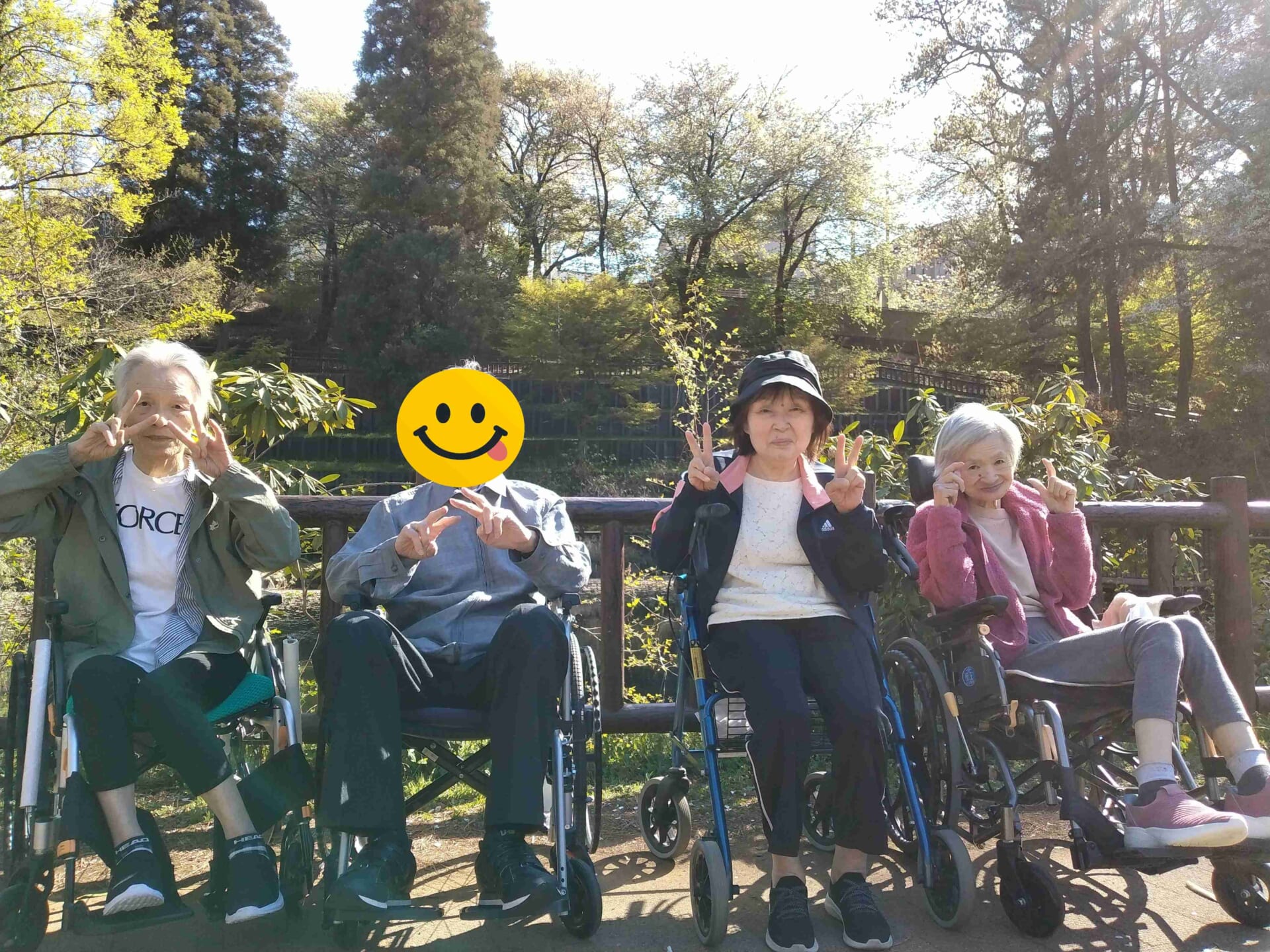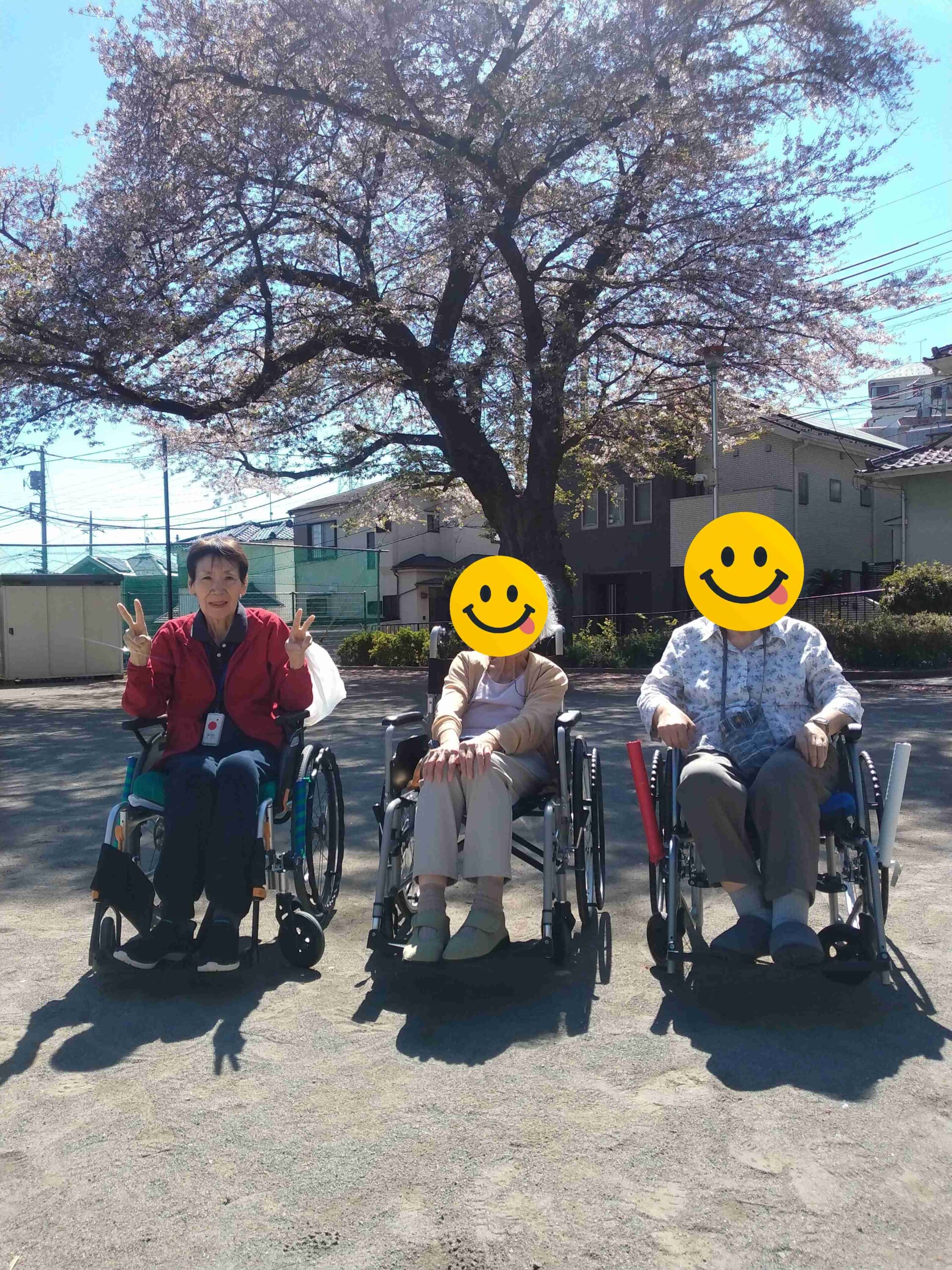 公園に着くと、満開の桜が青空に映え、まるで歓迎してくれているかのようで、車椅子の方も、ゆっくり歩かれる方も顔がこぼれていました。