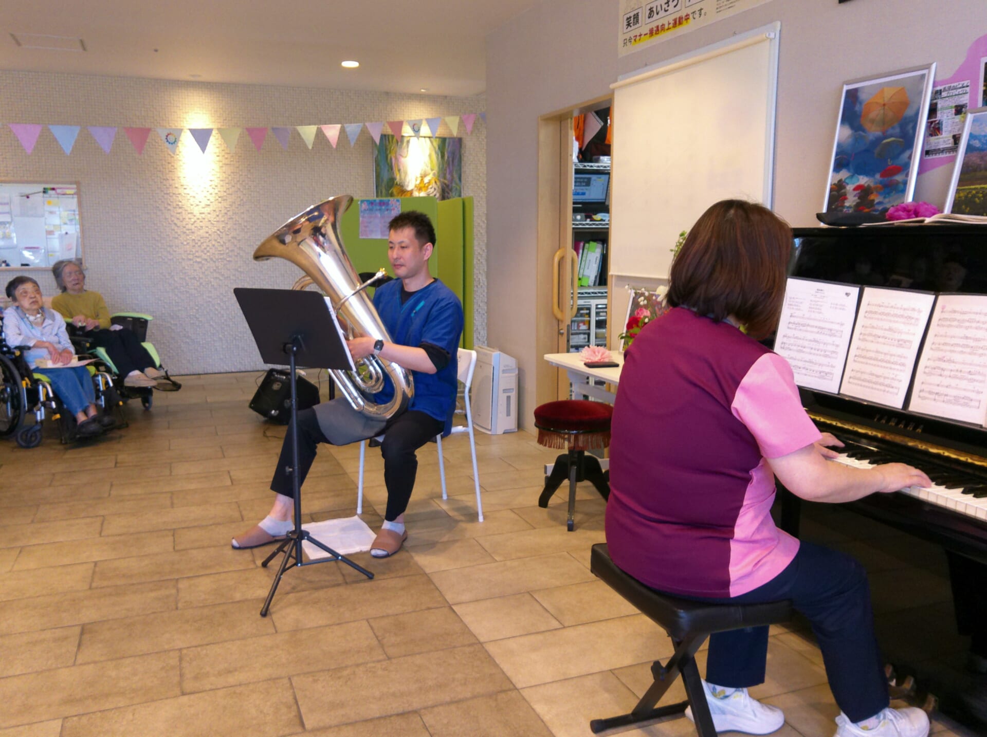 ピアノ・チューバ・オカリナの素敵な演奏で春らしい曲を聴いたり、歌ったりして